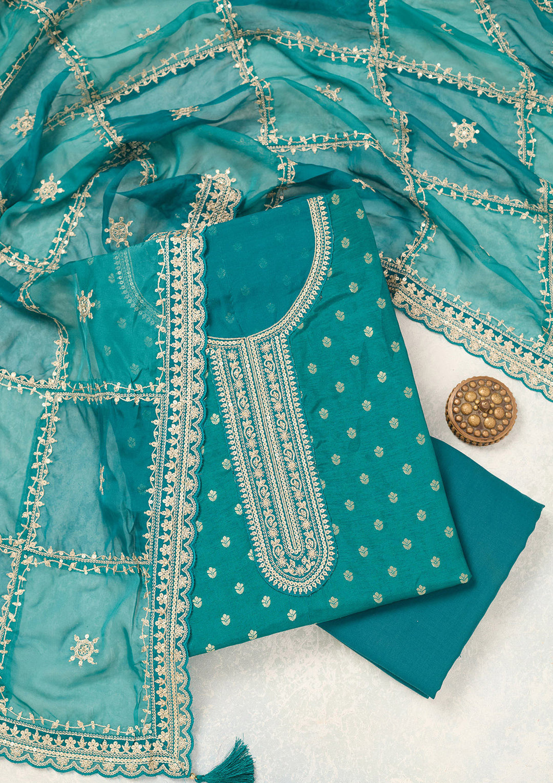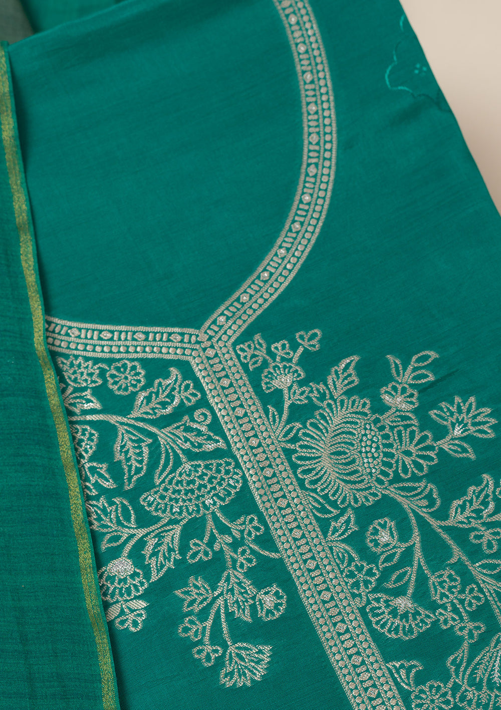 | Bottle Green Zariwork (Gold) Dola Silk Unstitched Salwar Suit | ₹ 1,992 | |
