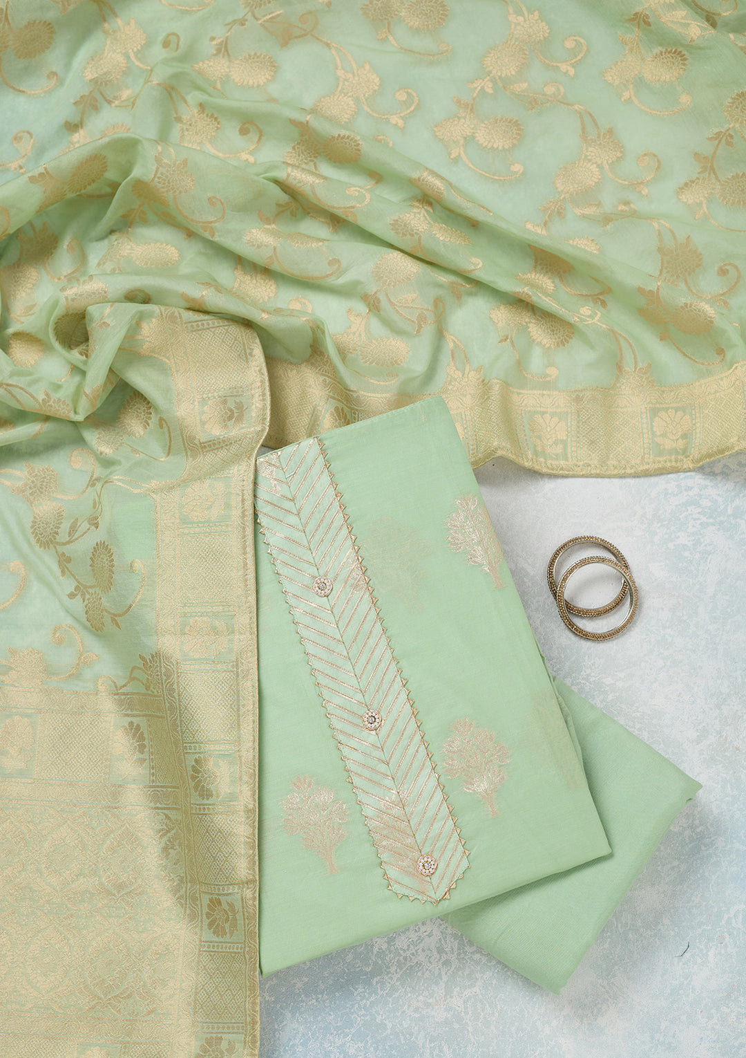 | Pista Green Zariwork Organza Unstitched Salwar Suit | ₹ 5,192 | |