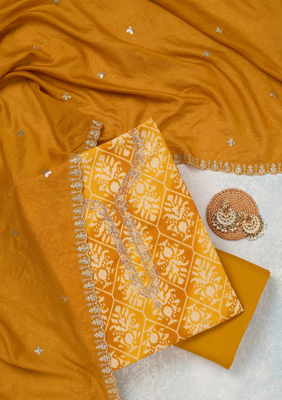 | Yellow Threadwork Organza Unstitched Salwar Suit | ₹ 2,994 | |