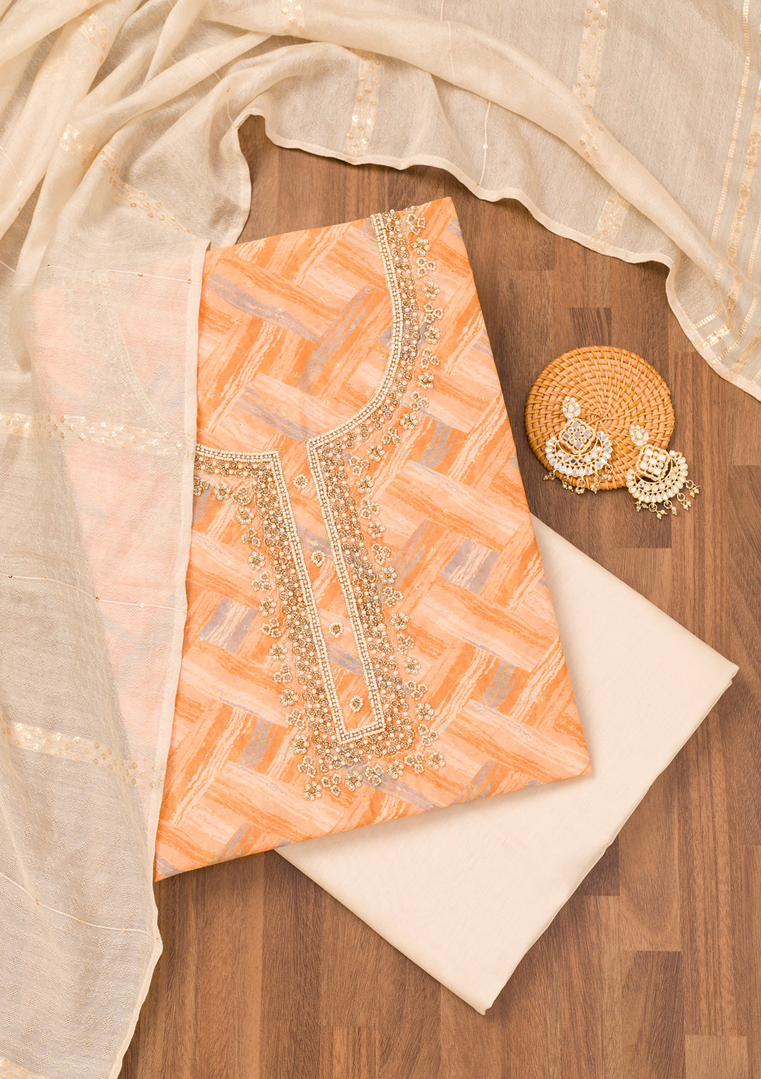 | Yellow Thread Embroidery Semi Crepe Unstitched Salwar Suit | ₹ 1,992 | |