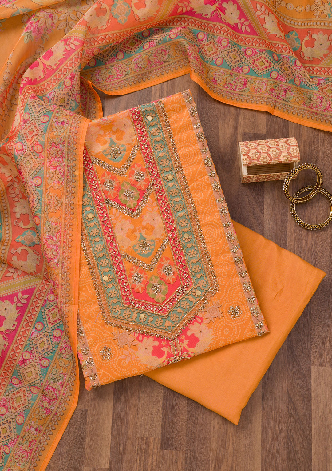 | Mustard Printed Chanderi Unstitched Salwar Suit | ₹ 1,794 | |
