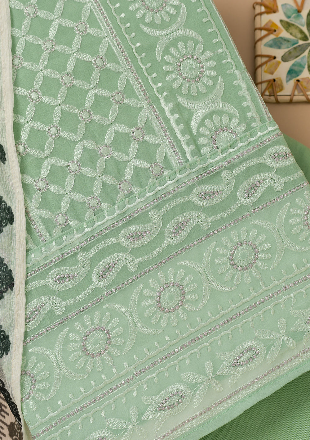 | Mehendi Stonework (Silver) Tissue Saree | ₹ 5,592 | |