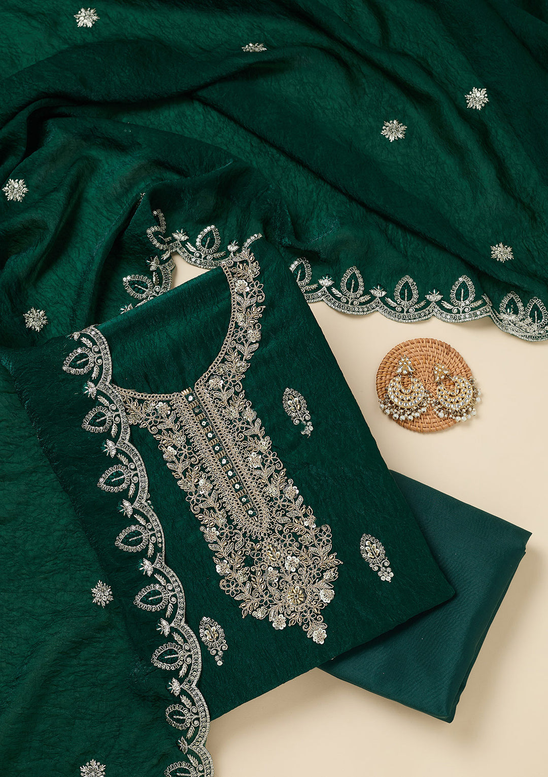 | Bottle Green Swarovski Semi Crepe Unstitched Salwar Suit | ₹ 5,192 | |
