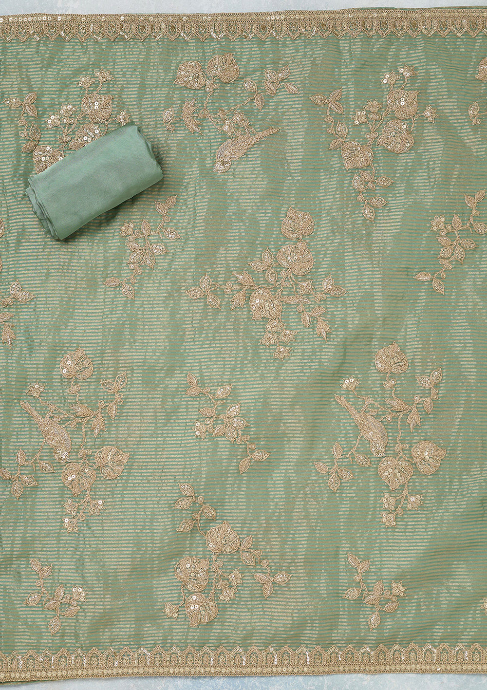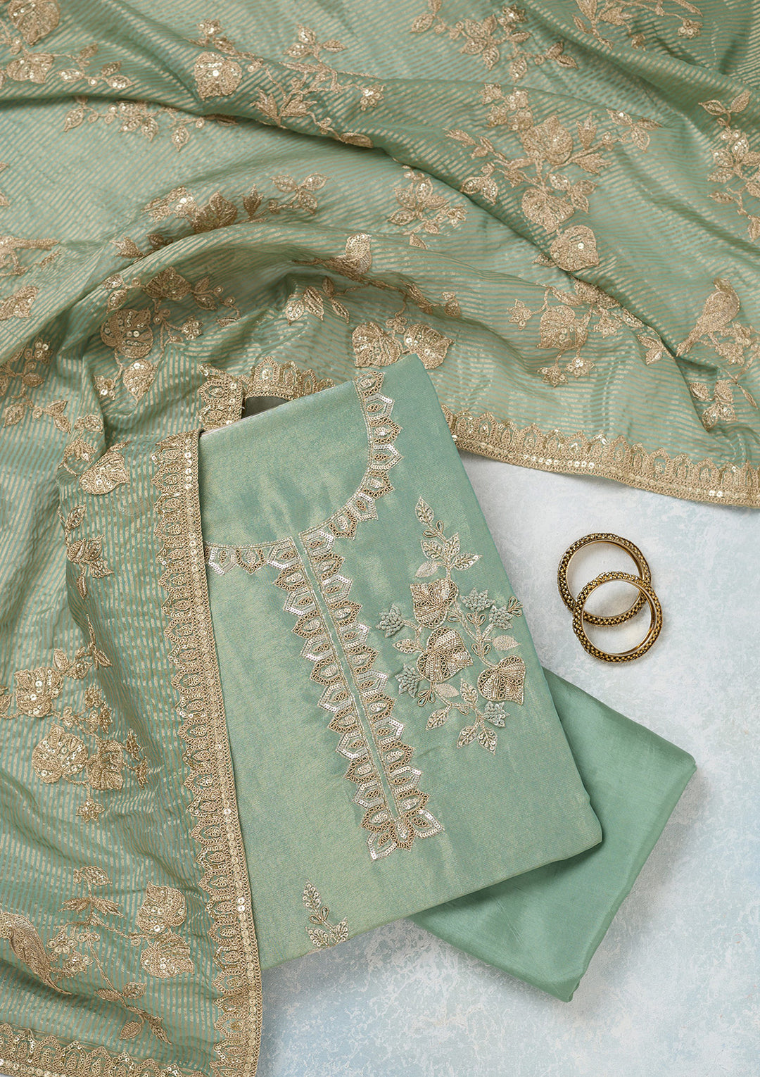 | Sea Green Sequins Organza Unstitched Salwar Suit | ₹ 7,592 | |