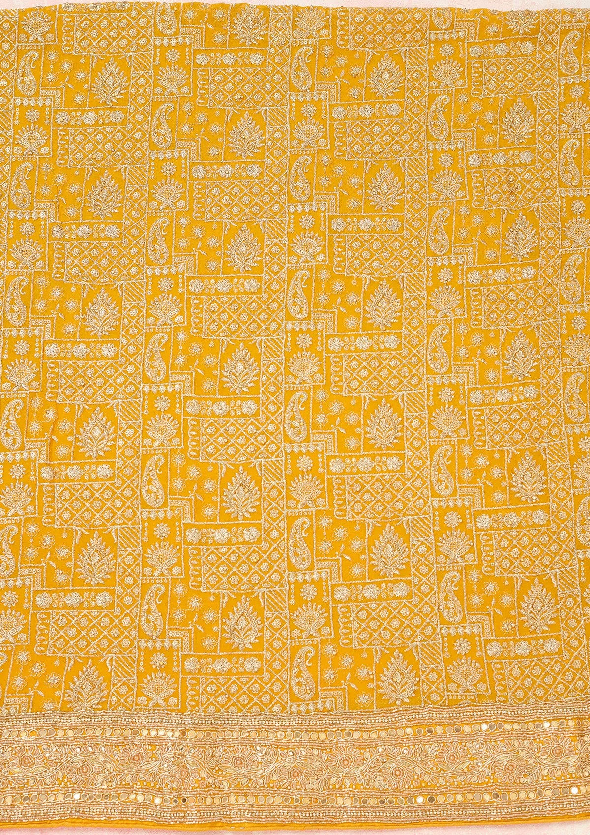 Yellow Zariwork (Gold) Georgette Unstitched Salwar Suit