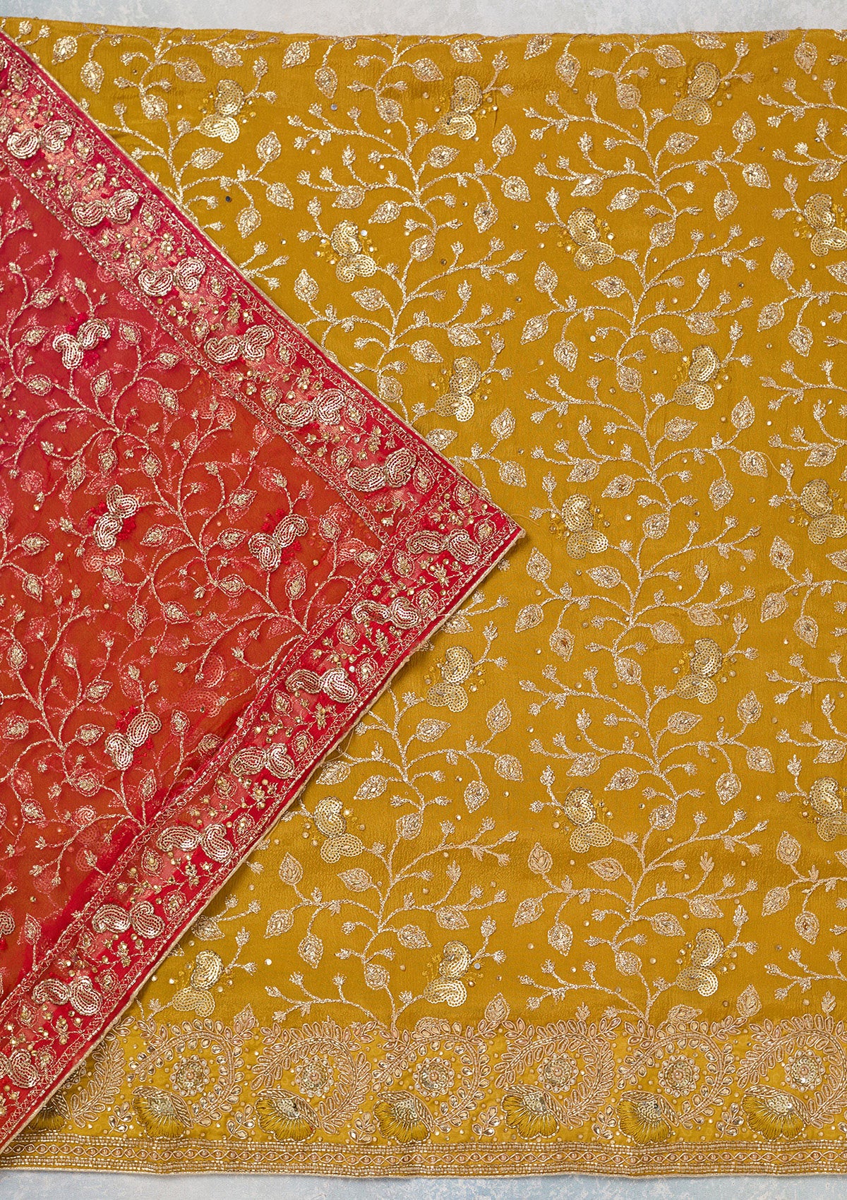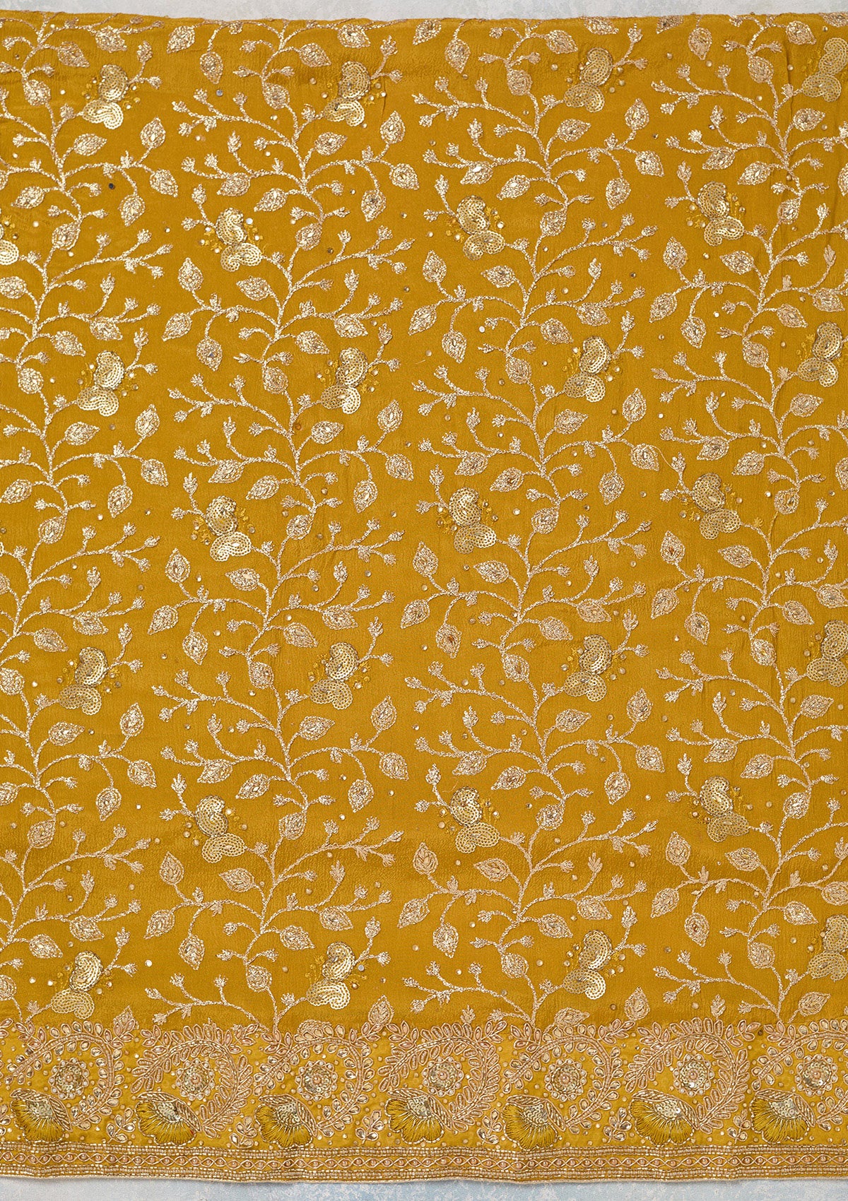 Mustard Zariwork Georgette Unstitched Salwar Suit