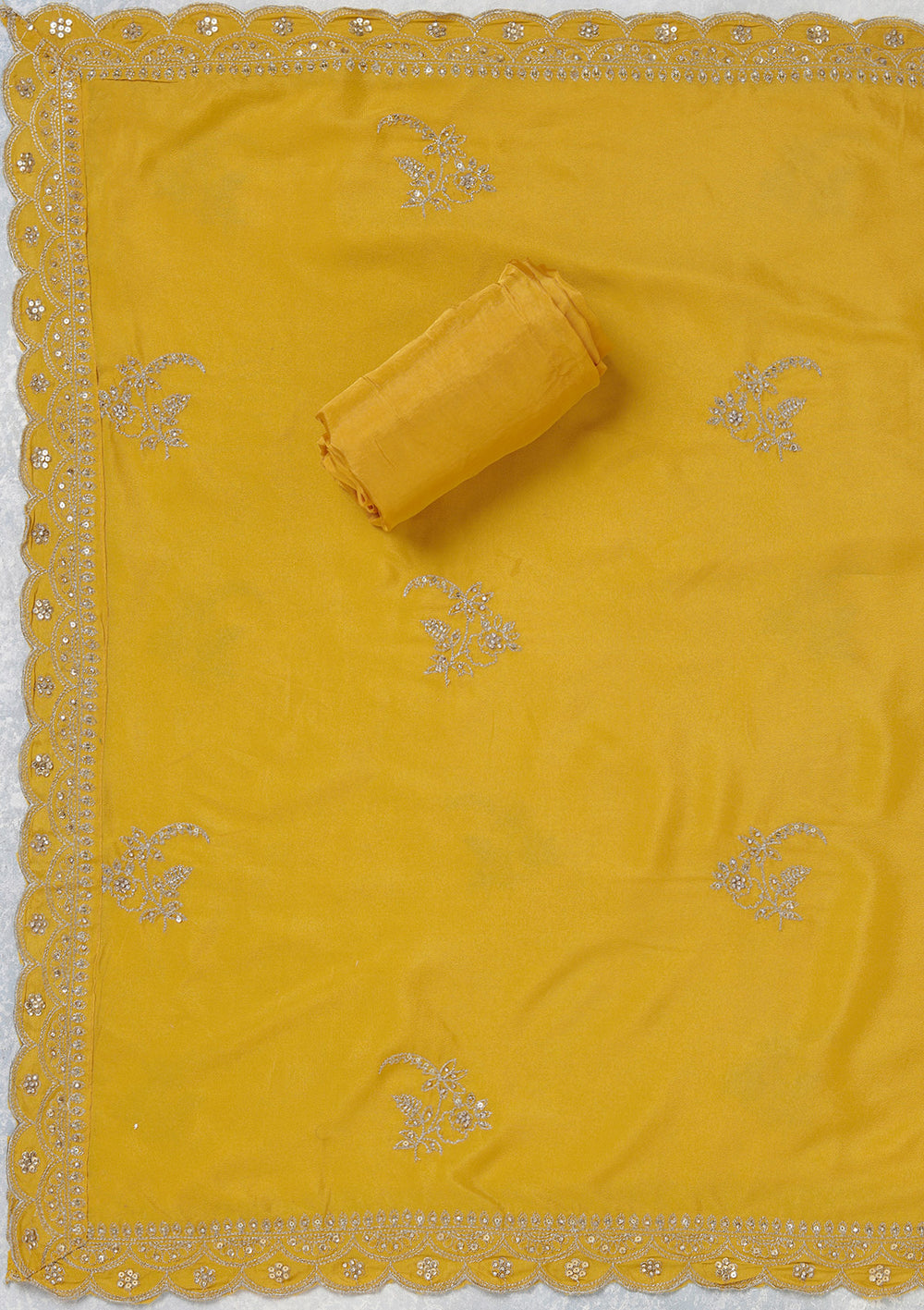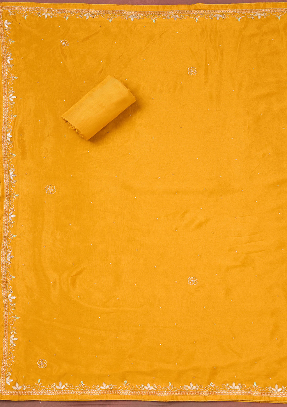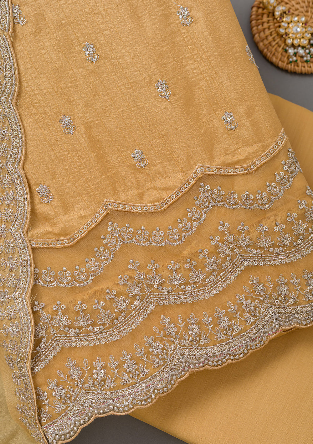 | Mustard Zariwork Dola Silk Unstitched Salwar Suit | ₹ 3,592 | |