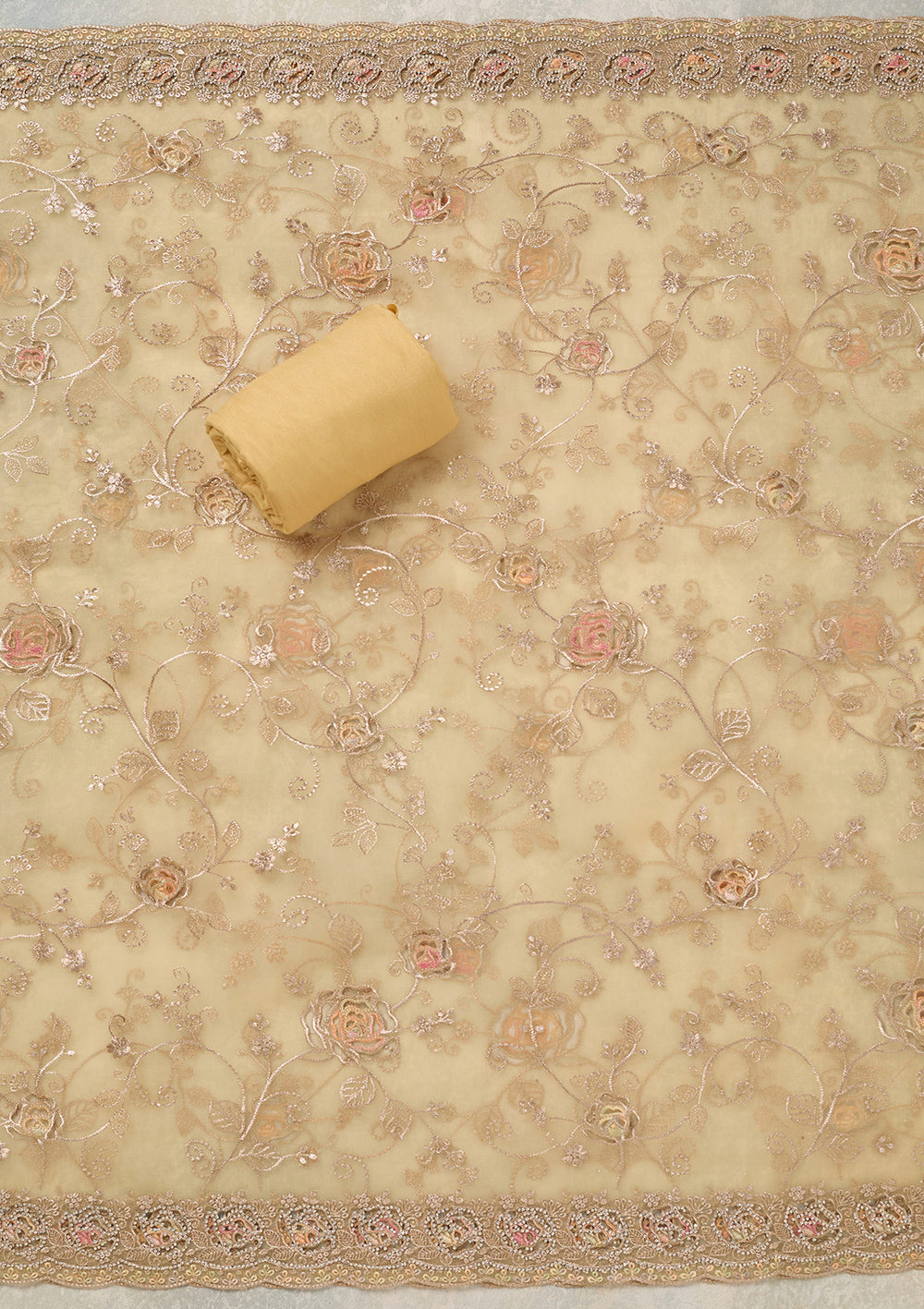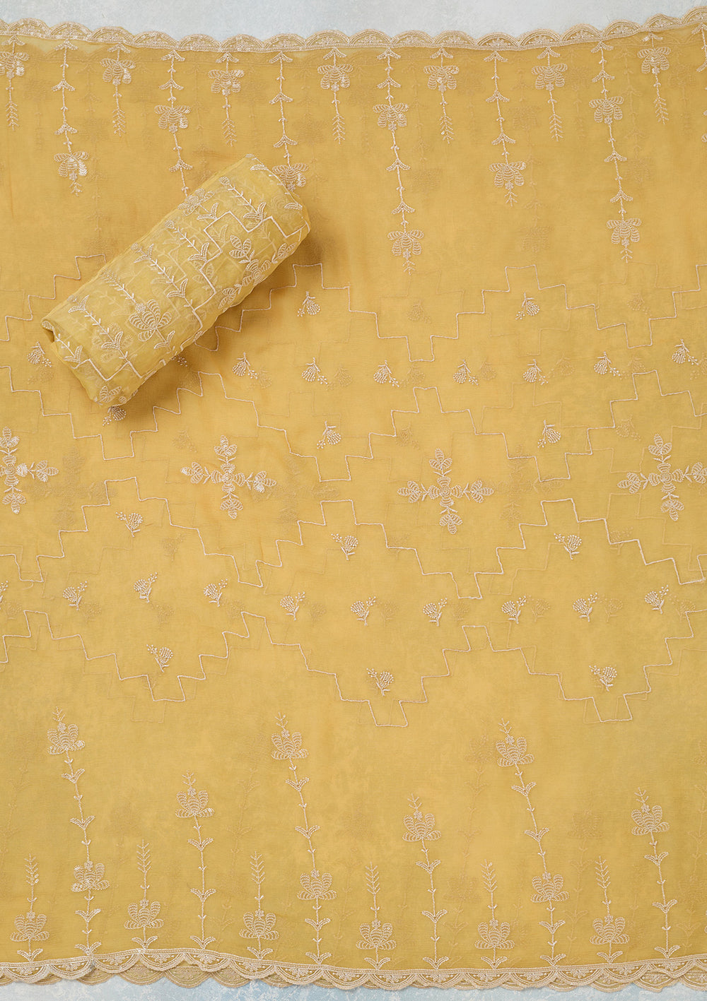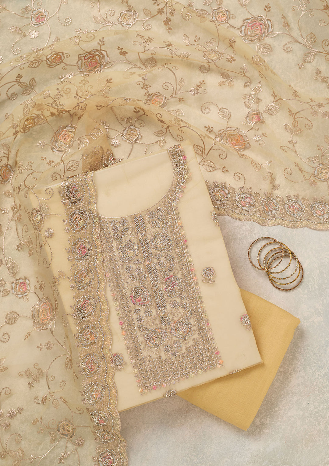 | Yellow Zariwork (Gold) Organza Unstitched Salwar Suit | ₹ 5,192 | |