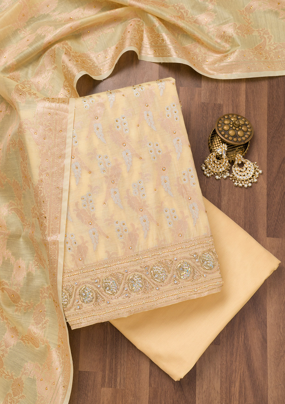 | Yellow Zariwork Banarasi Unstitched Salwar Suit | ₹ 3,594 | |