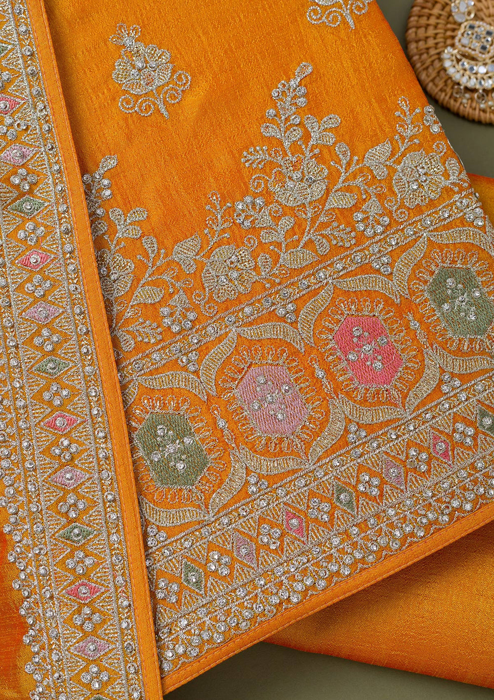 | Yellow Zariwork Banarasi Unstitched Salwar Suit | ₹ 3,594 | |