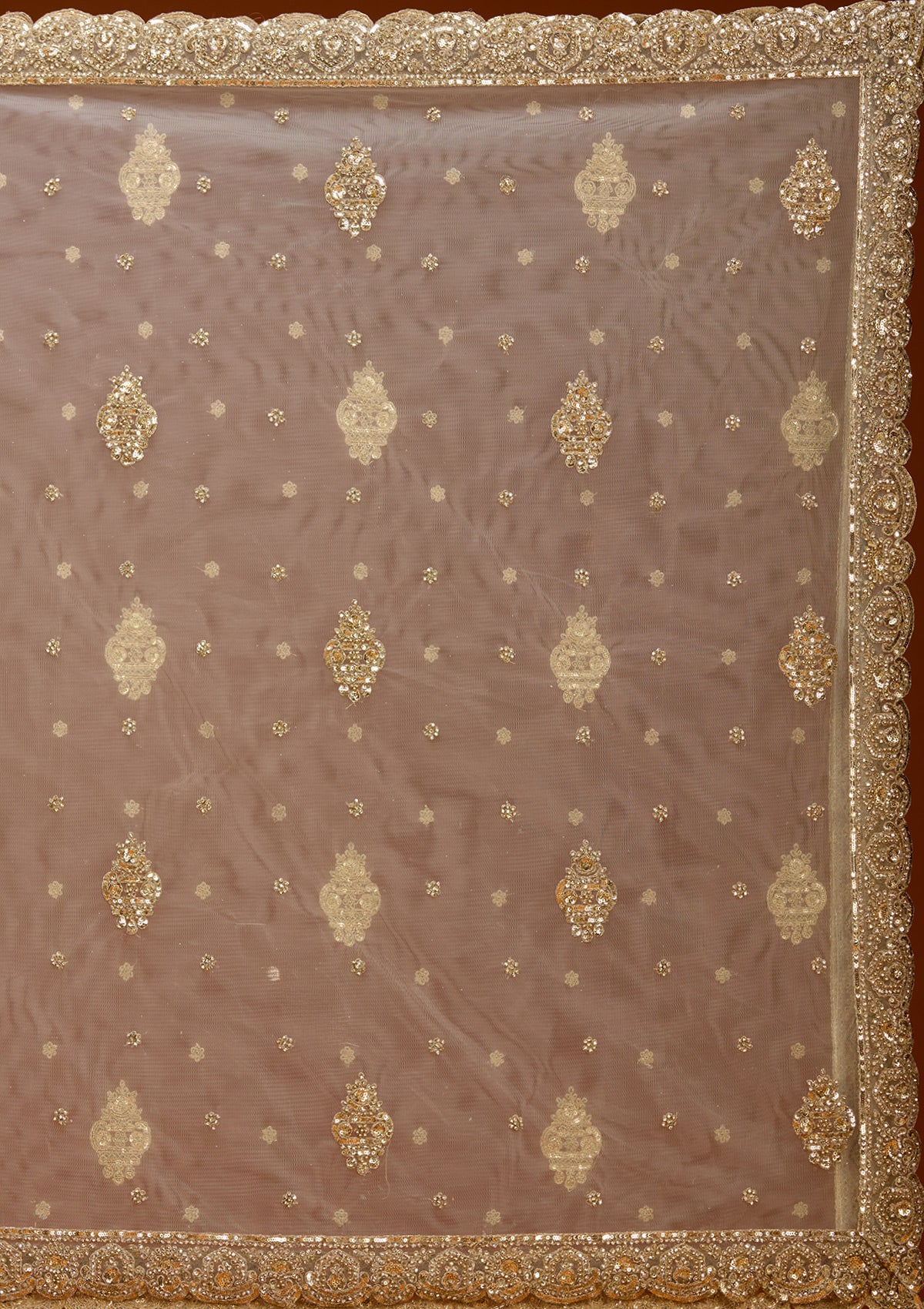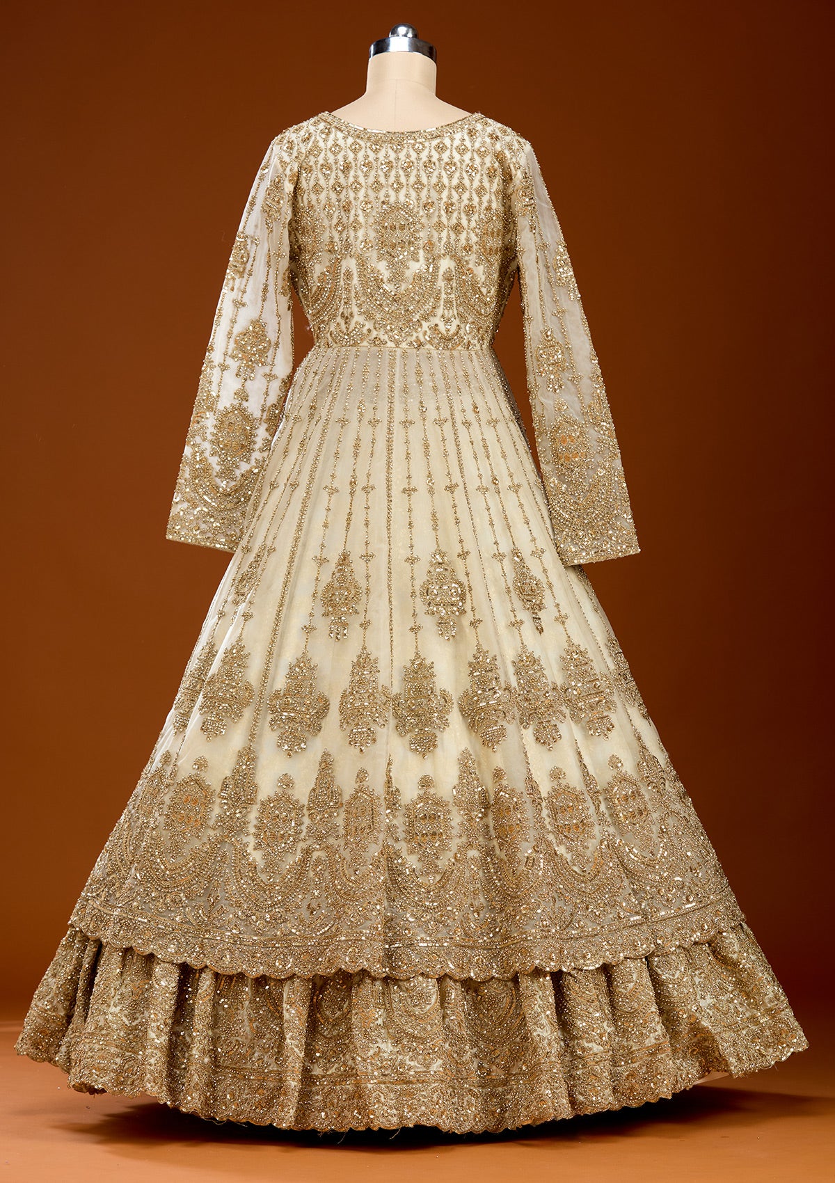 Gold Readymade Lehenga in Net fabric. The Lehenga is embellished with Cording embroidery. Accompanied with an Readymade blouse and dupatta. Comes with the Koskii promise of premium quality.
