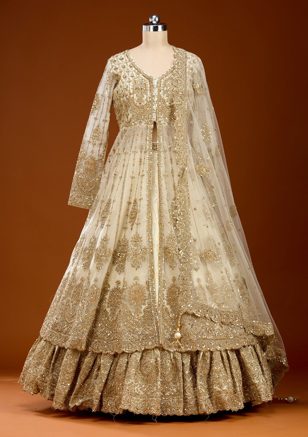 | Off White Zariwork (Gold) Crepe Readymade Lehenga | ₹ 18,990 | |