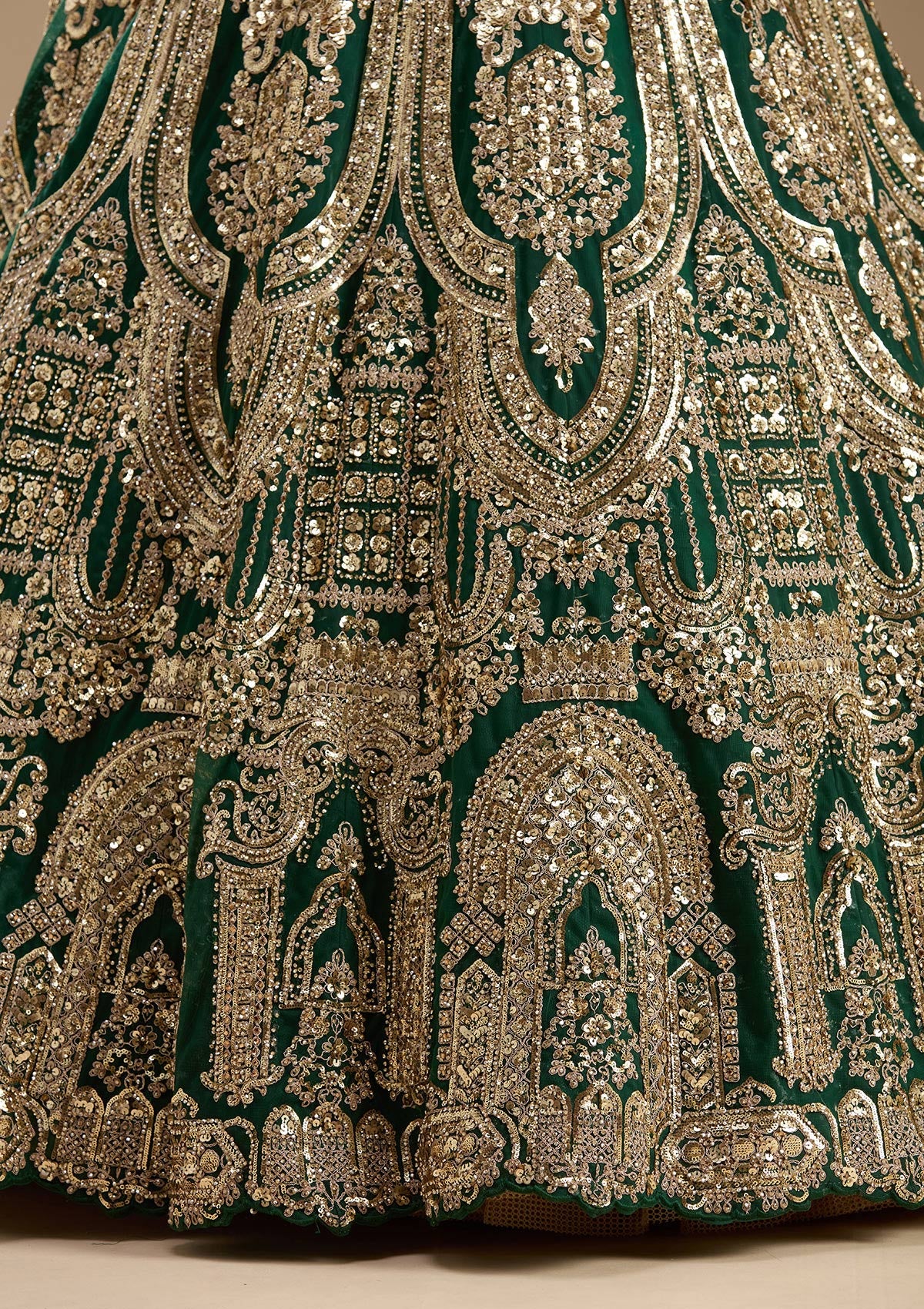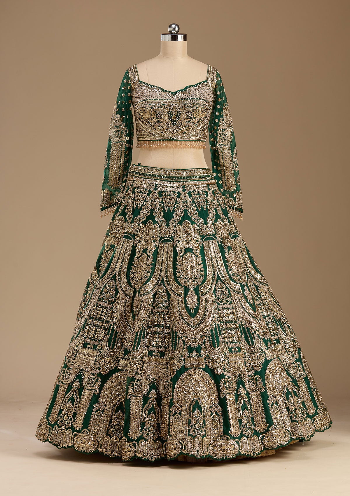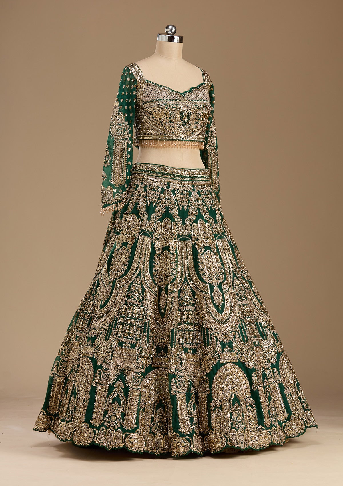 Bottle Green Readymade Lehenga in Net fabric The Lehenga is embellished with Sequins embroidery Accompanied with an Readymade blouse and dupatta Comes with the Koskii promise of premium quality.