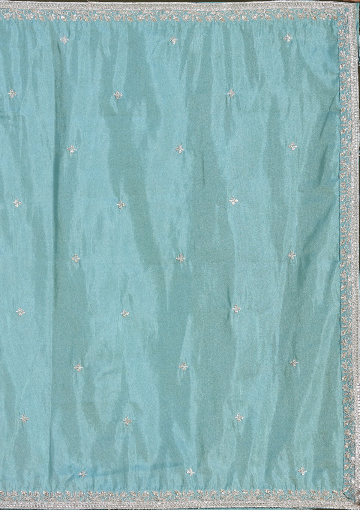Sky Blue Readymade Lehenga in Banarasi fabric. The Lehenga is embellished with Sequins embroidery. Accompanied with an Readymade blouse and dupatta. Comes with the Koskii promise of premium quality.