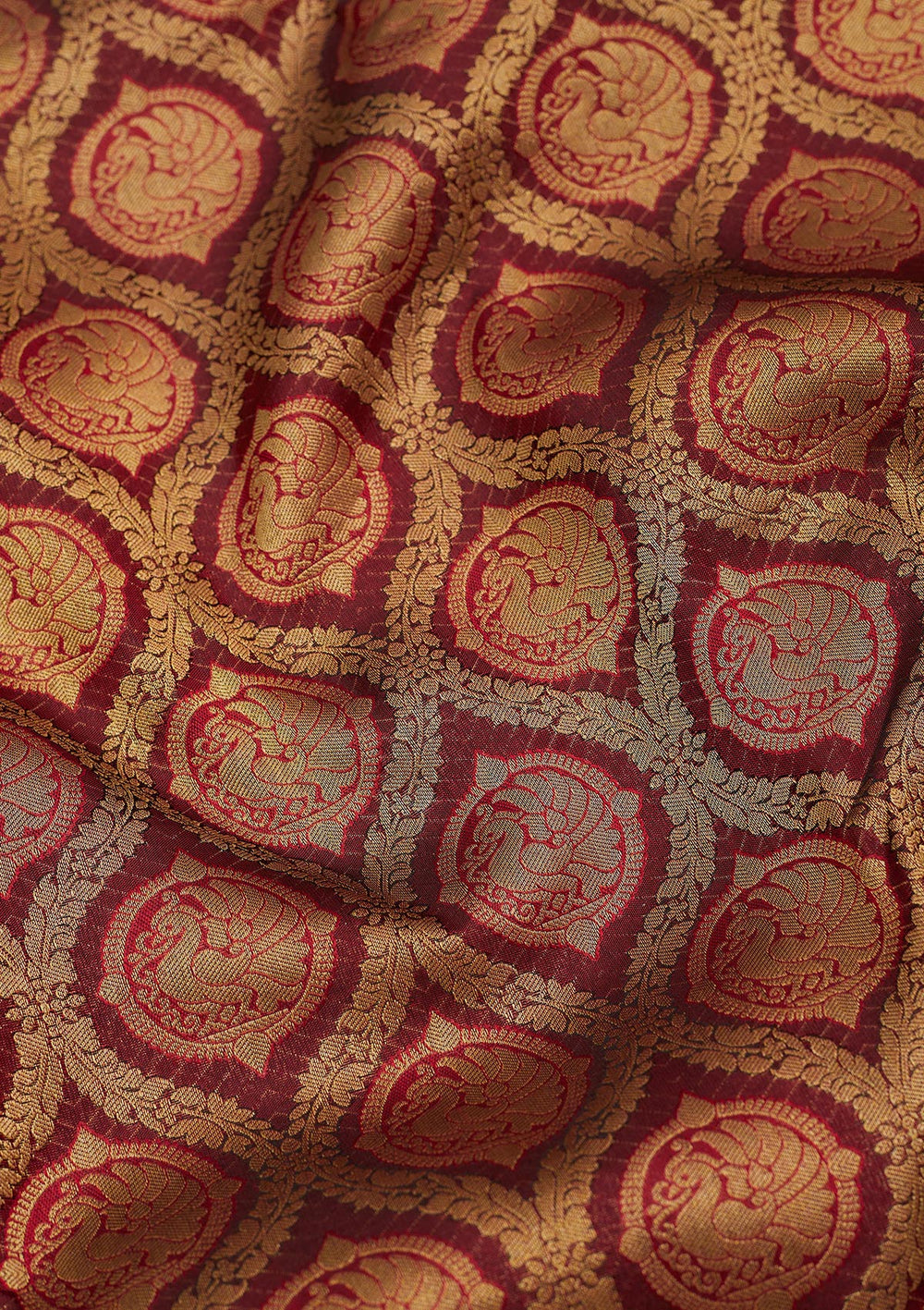 Brown Saree in Pure Silk fabric. The Saree is elevated with Zariwork embroidery. It comes with an Unstitched blouse. Comes with the Koskii promise of premium quality.