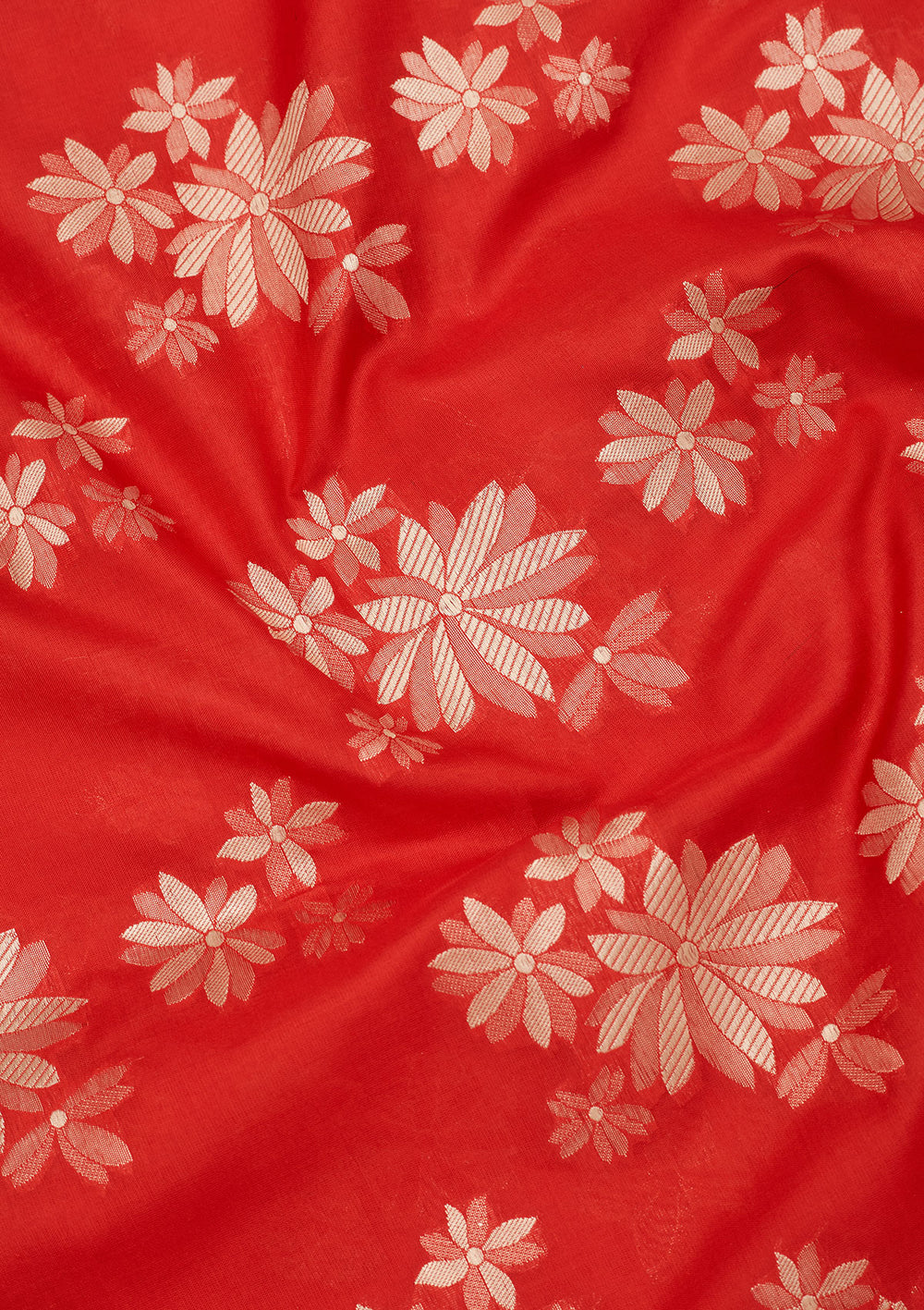 Red Saree in Pure Silk fabric. The Saree is elevated with Zariwork embroidery. It comes with an Unstitched blouse. Comes with the Koskii promise of premium quality.