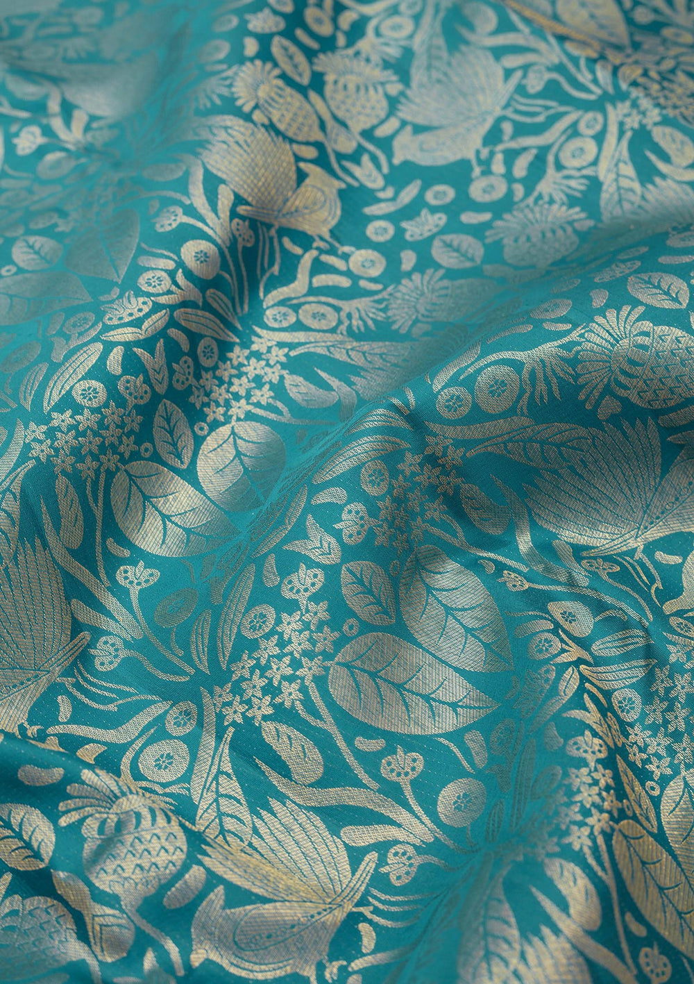 Turquoise Blue Saree in Pure Silk fabric. The Saree is elevated with Zariwork embroidery. It comes with an Unstitched blouse. Comes with the Koskii promise of premium quality.