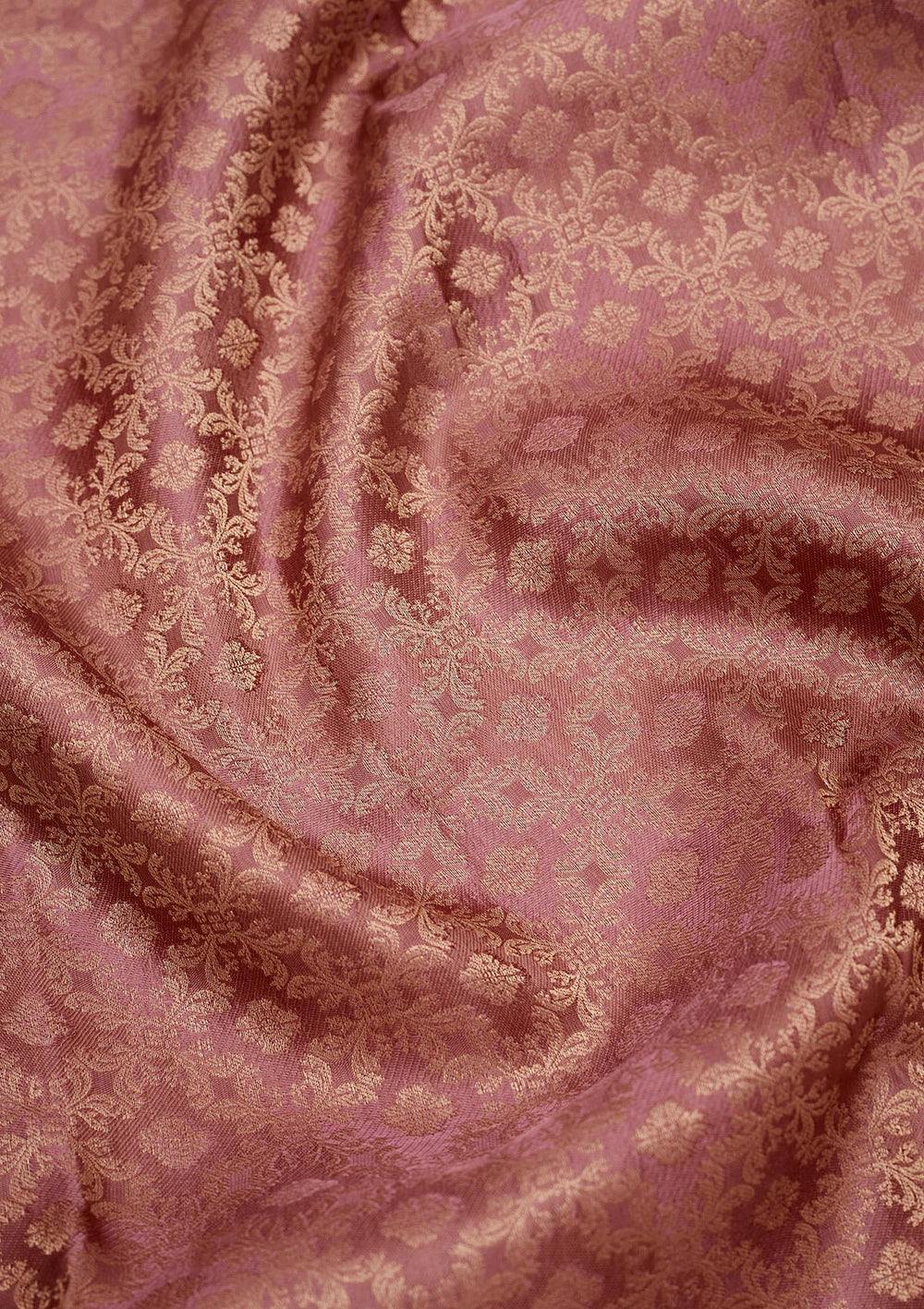 Wine Saree in Pure Silk fabric. The Saree is elevated with Zariwork embroidery. It comes with an Unstitched blouse. Comes with the Koskii promise of premium quality.