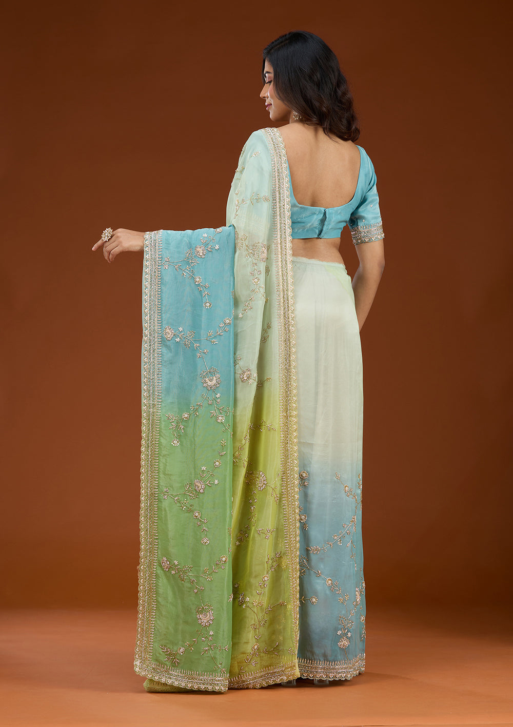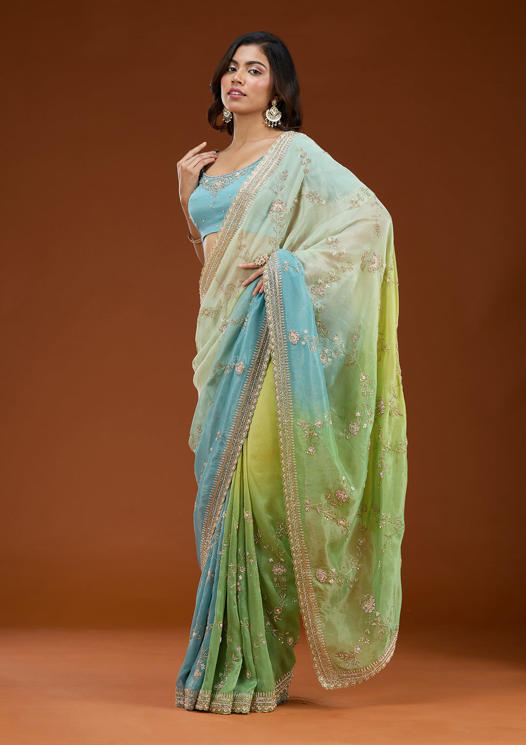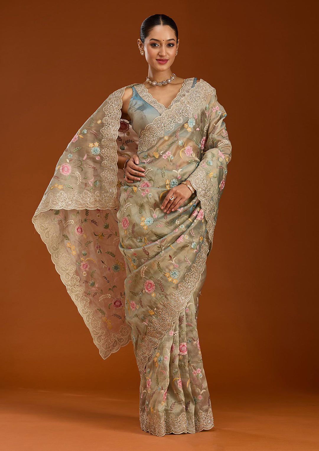 | Pista Green Cutdana Tissue Saree | ₹ 22,990 | |