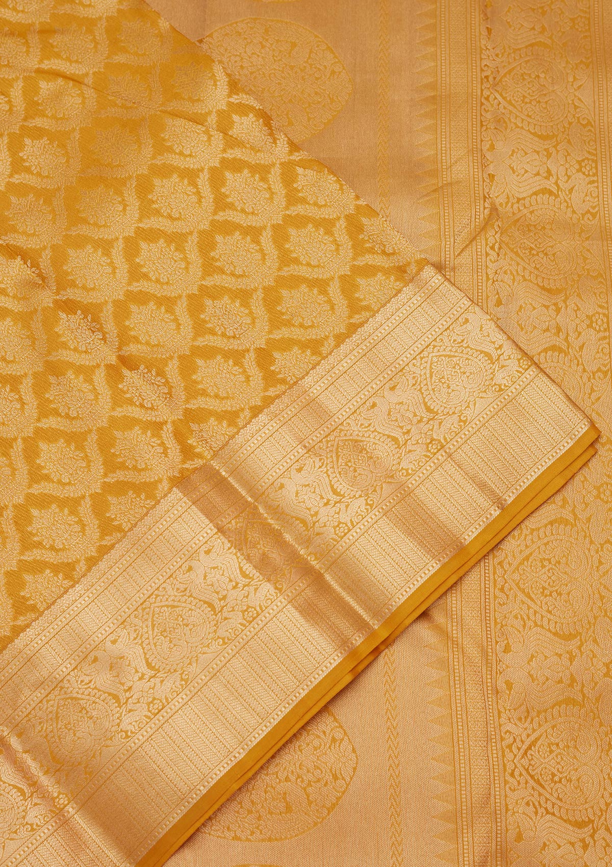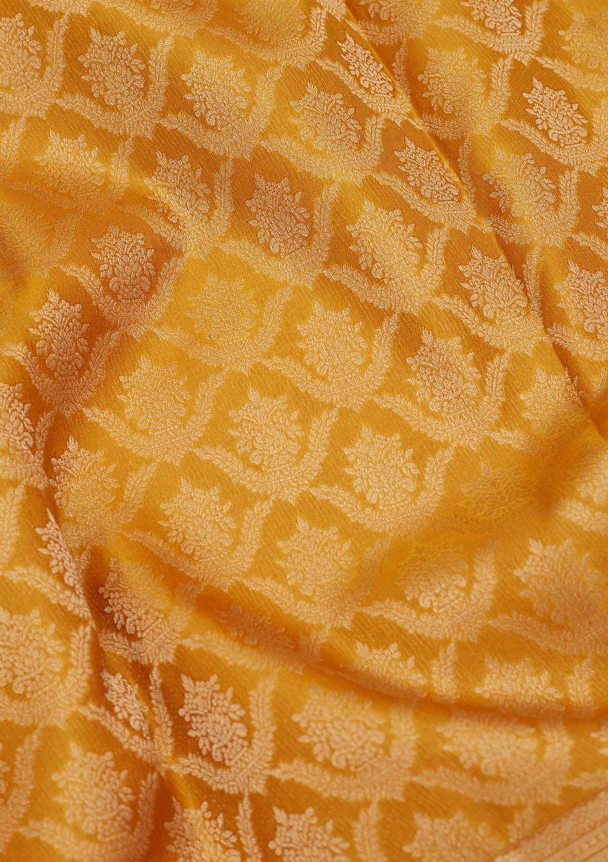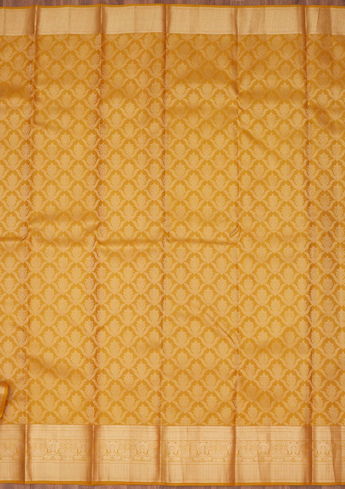 Mustard Silk_Saree in Pure Silk fabric. The Silk_Saree is elevated with Zariwork embroidery. It comes with an Unstitched blouse. Comes with the Koskii promise of premium quality.