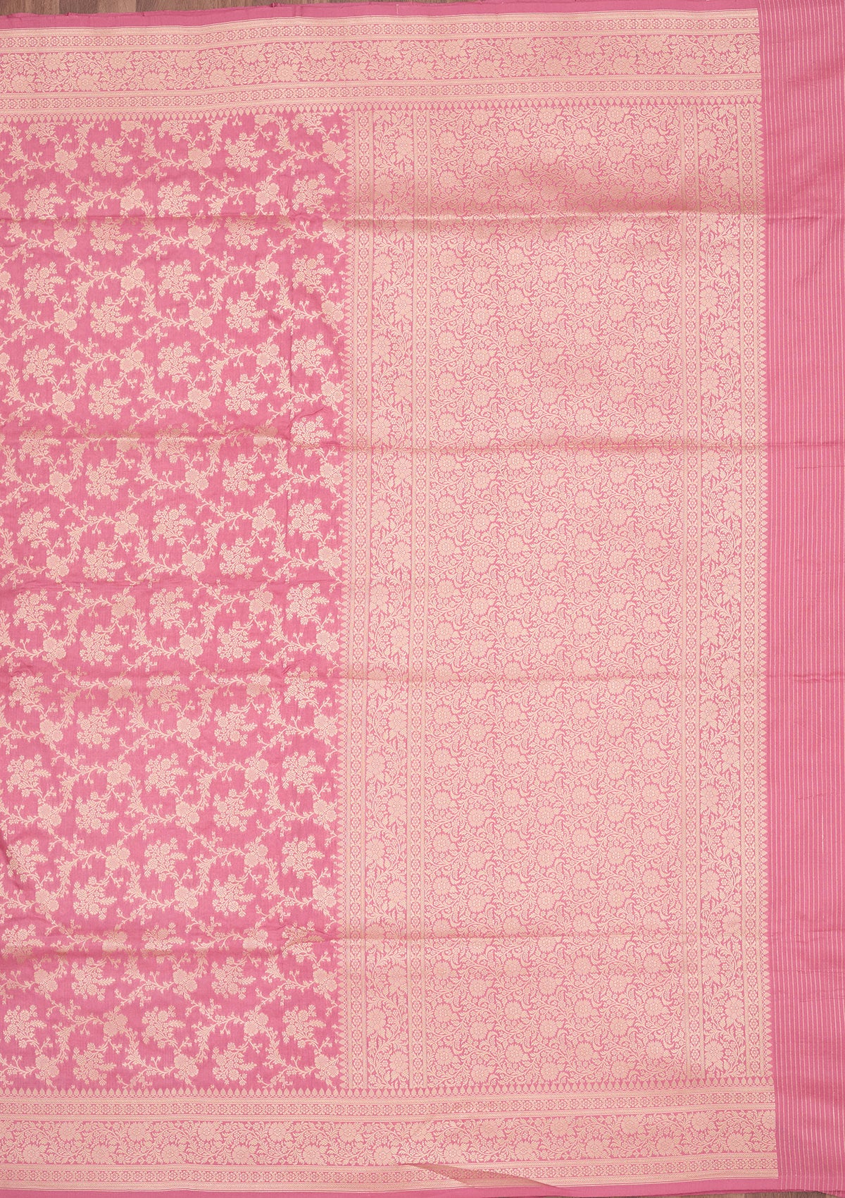 Pink Silk Saree in Pure Silk fabric. The Silk Saree is elevated with Zariwork embroidery. It comes with an Unstitched blouse. Comes with the Koskii promise of premium quality.