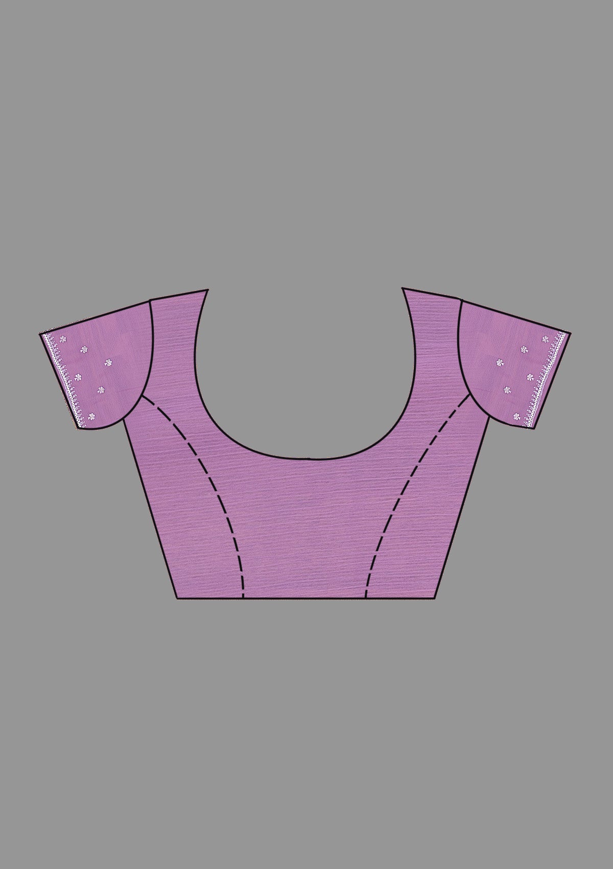 Step out in style with the Koskii Purple Chiffon Saree, where vibrant meets elegance in a dance of delicate threadwork embroidery. This whisper-light chiffon drapes effortlessly, adorned with an array of shimmering accents that catch the light with every move you make. Perfect for those evenings when you want to be the shimmer in everyone's eyes, this saree promises to wrap you in both comfort and glamour.