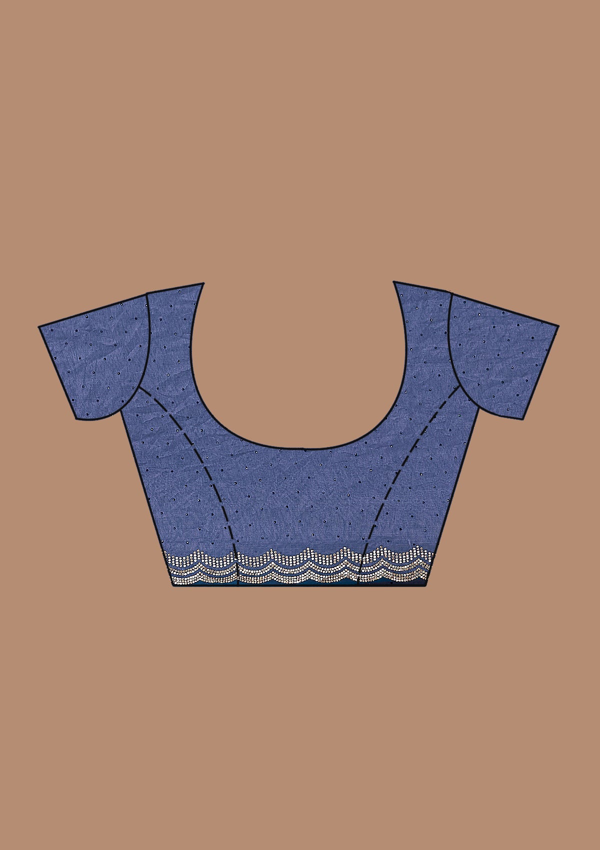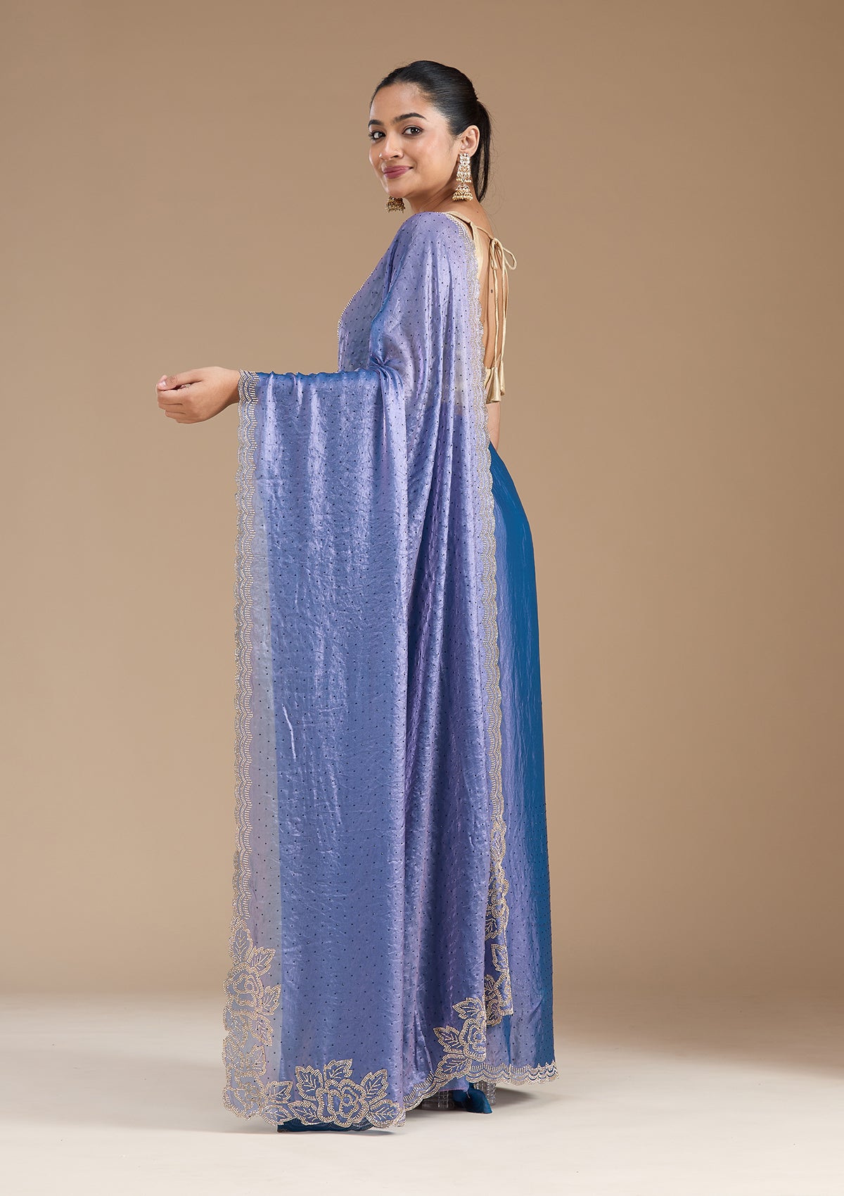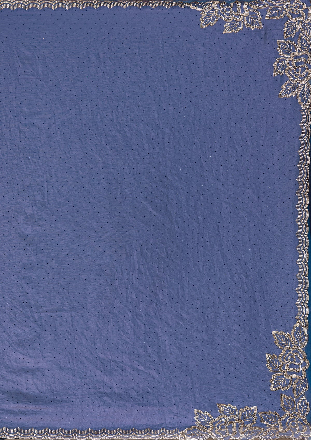 Violet Saree in Chiffon fabric. The Saree is elevated with Stonework (Gold) embroidery. It comes with an Unstitched blouse. Comes with the Koskii promise of premium quality.