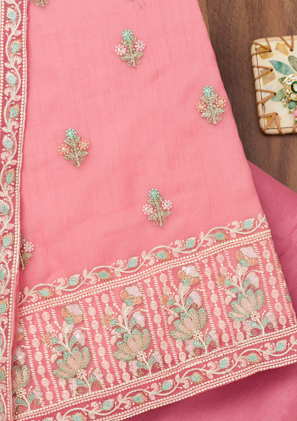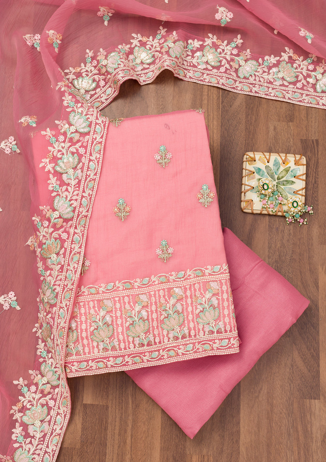 | Pink Threadwork Semi Crepe Unstitched Salwar Suit | ₹ 2,694 | |