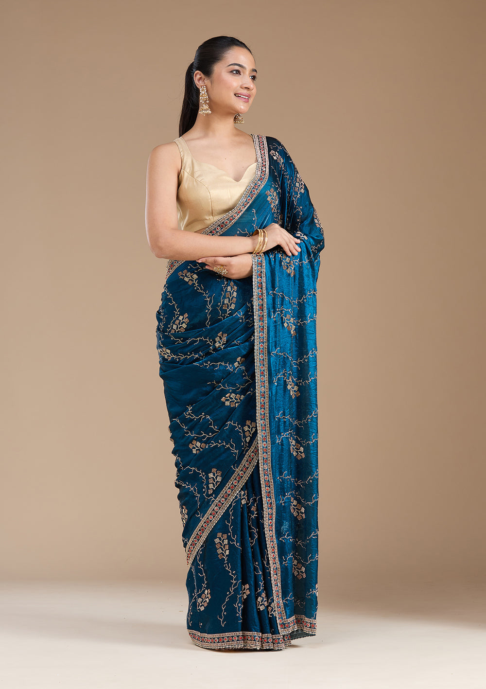 | Royal Blue Stonework (Gold) Tissue Saree | ₹ 6,293 | |