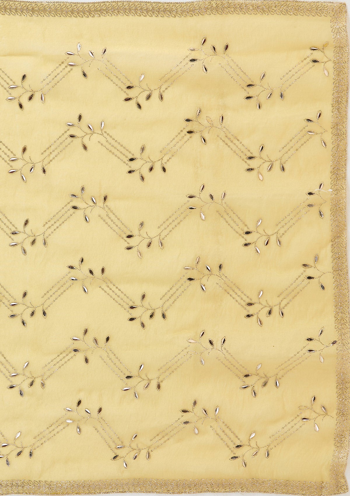 Lemon Yellow Saree in Tissue fabric. The Saree is elevated with Stonework (Gold) embroidery. It comes with an Unstitched blouse. Comes with the Koskii promise of premium quality.