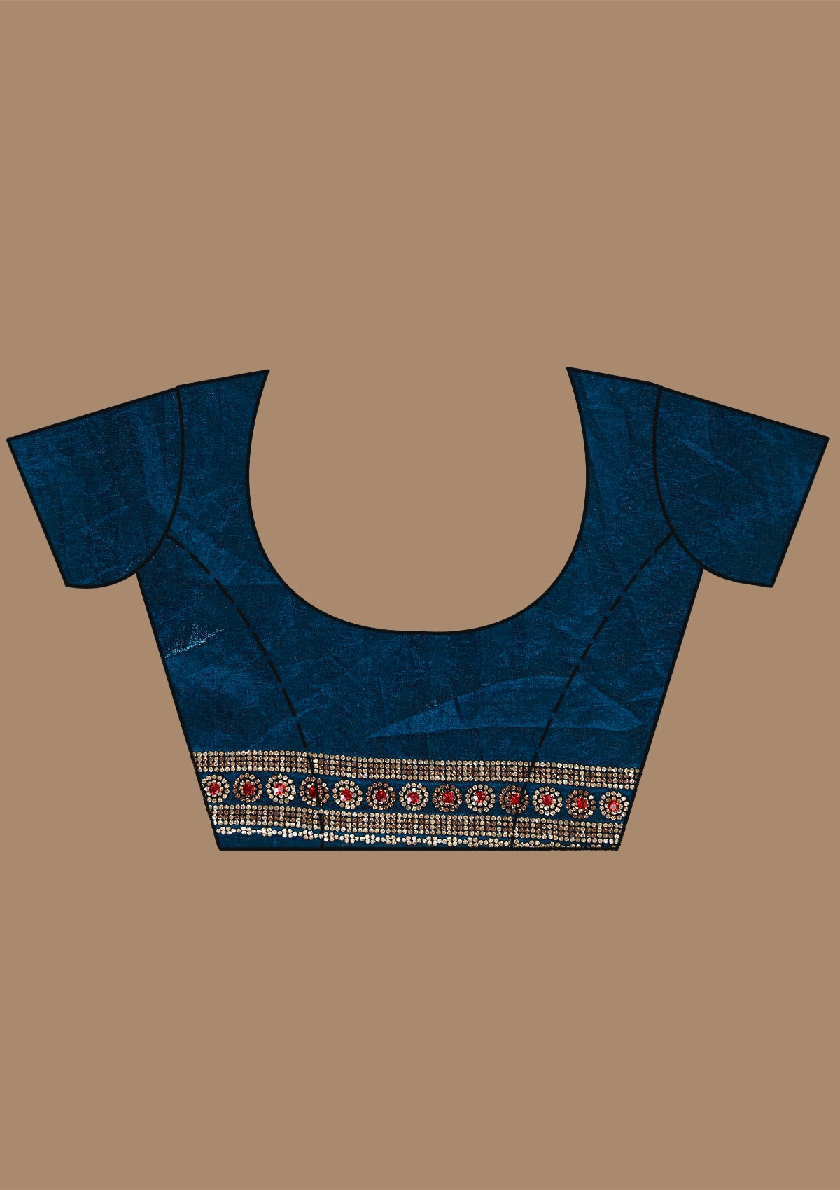 Royal Blue Saree in Tissue fabric. The Saree is elevated with Stonework (Gold) embroidery. It comes with an Unstitched blouse. Comes with the Koskii promise of premium quality.