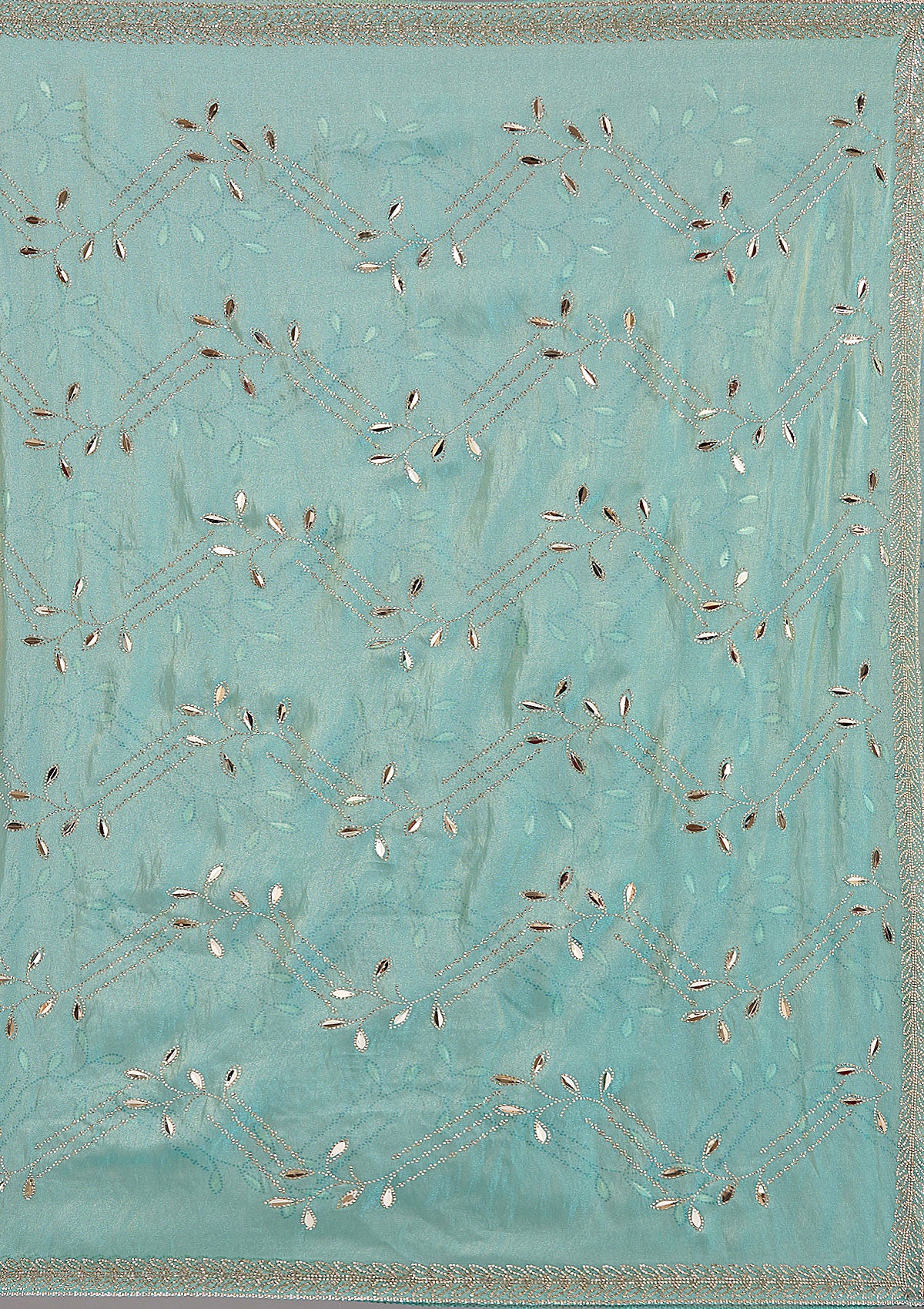 Sea Green Saree in Tissue fabric The Saree is elevated with Stonework (Gold) embroidery It comes with an Unstitched blouse Comes with the Koskii promise of premium quality.