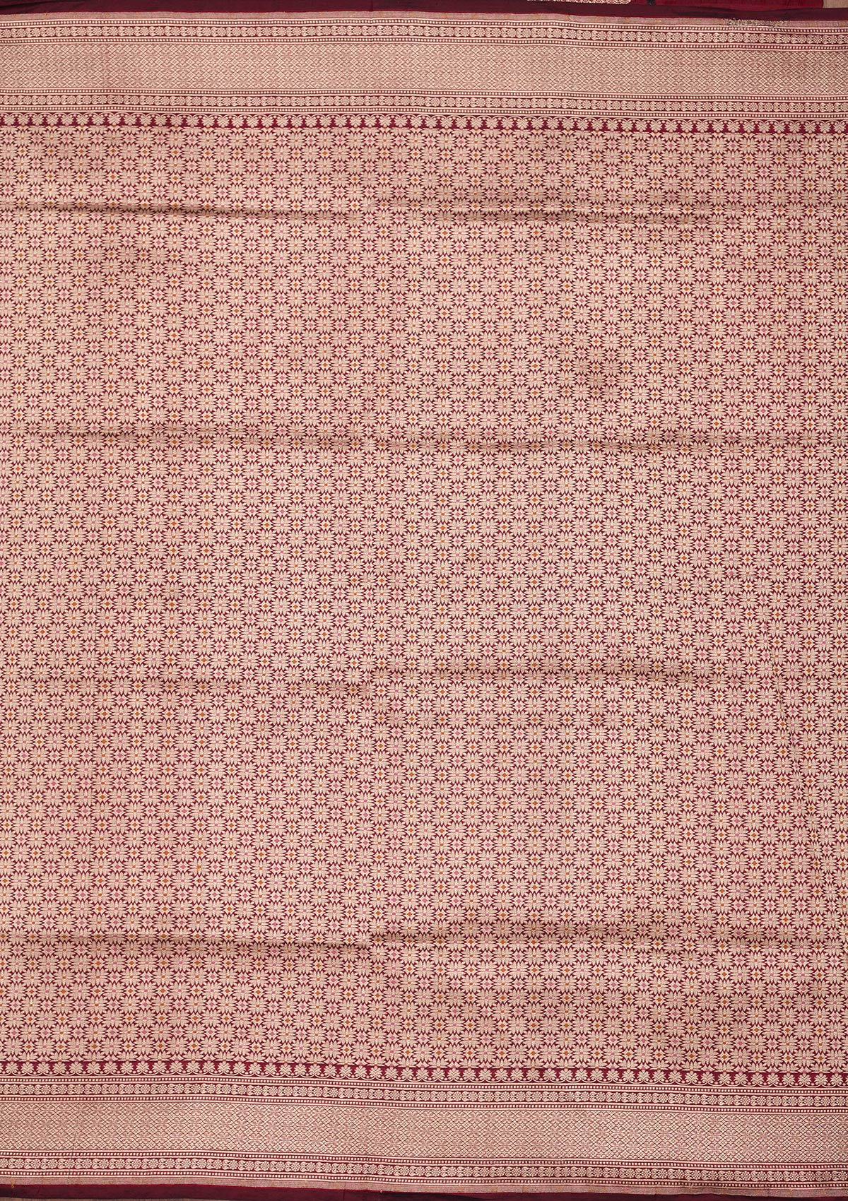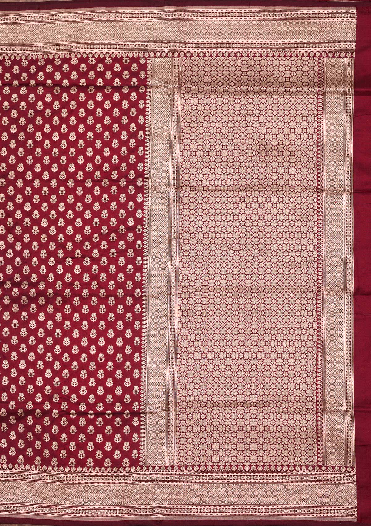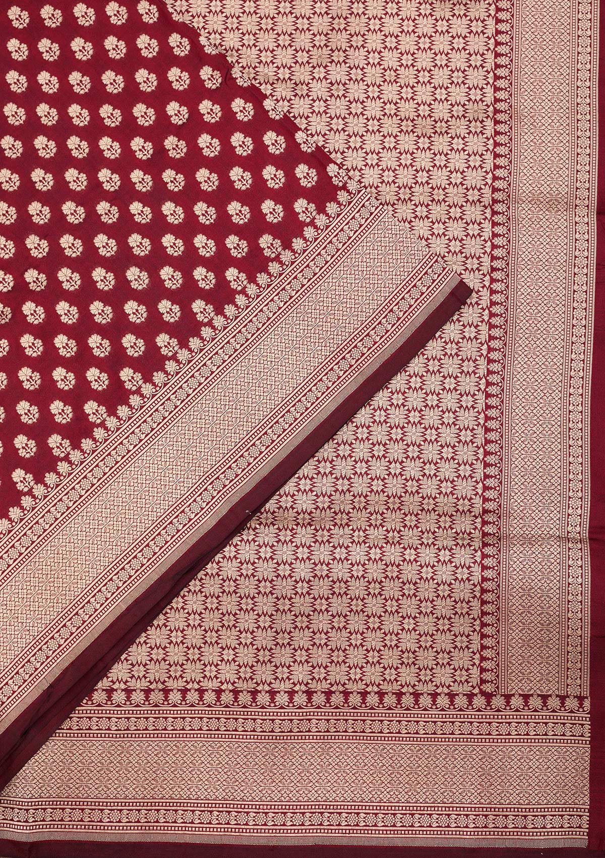 Maroon Silk Saree in Pure Silk fabric. The Silk Saree is elevated with Zariwork embroidery. It comes with an Unstitched blouse. Comes with the Koskii promise of premium quality.