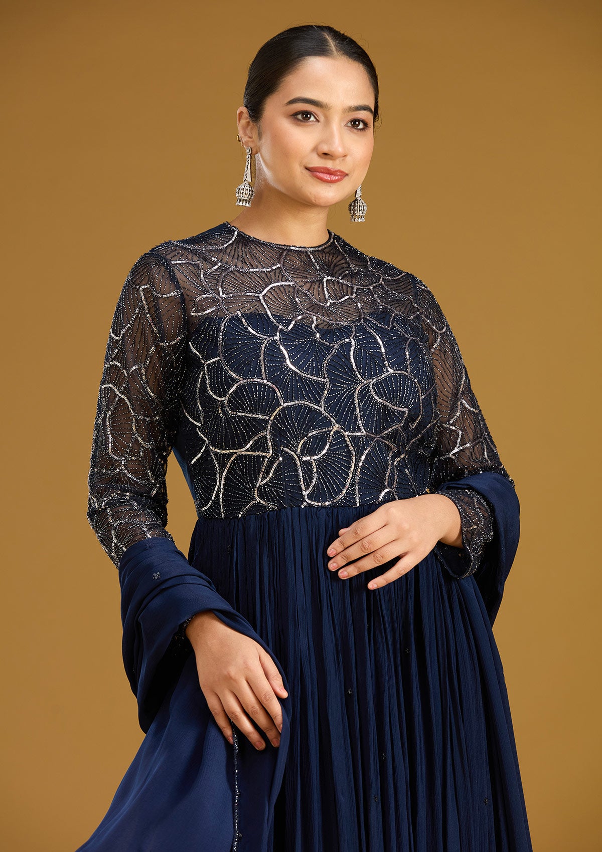 Navy Blue Salwar Suit in Satin fabric. The Salwar Suit is embellished with Sequins embroidery. Accompanied with a bottom and dupatta. Comes with the Koskii promise of premium quality.