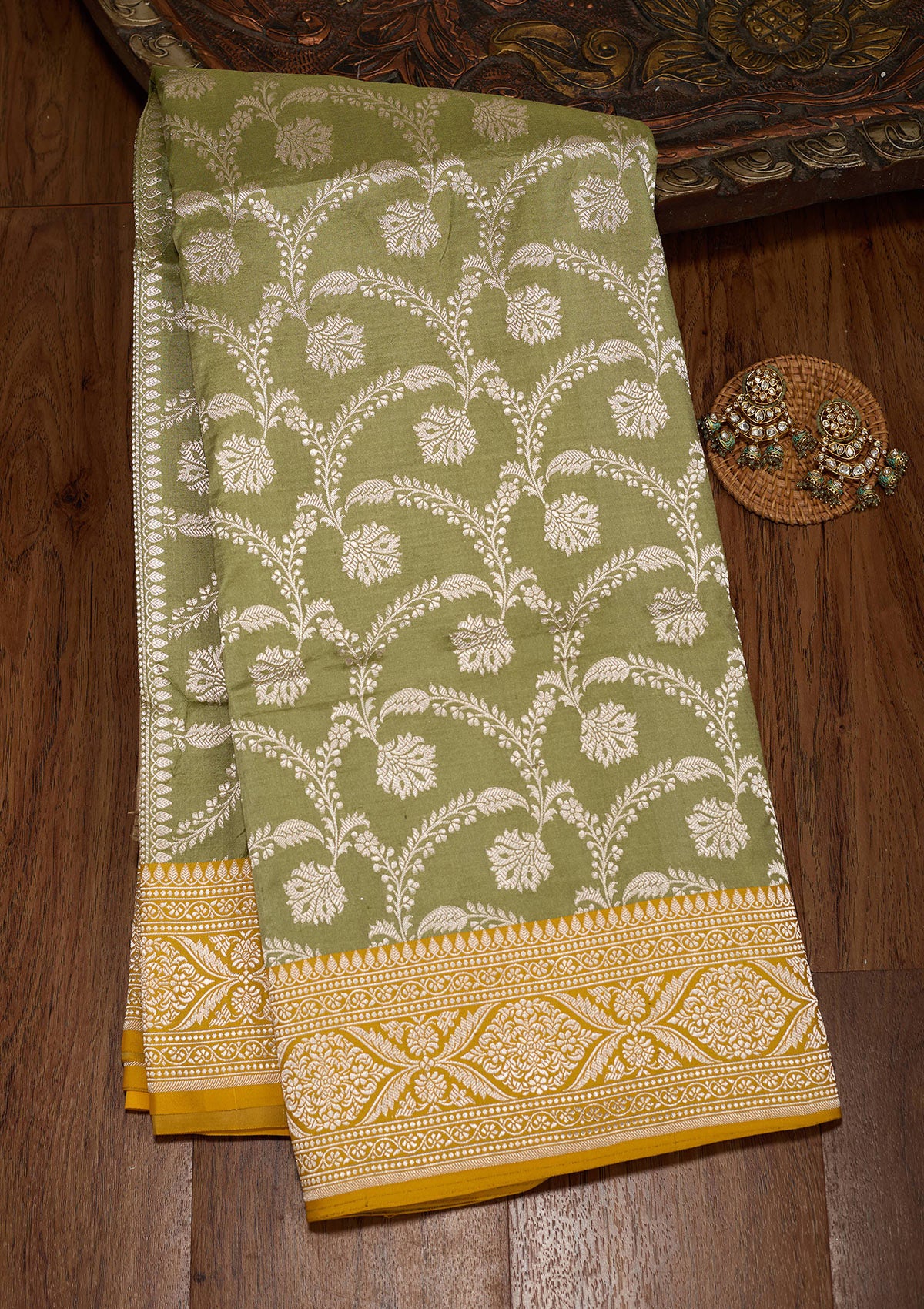 Pista Green Silk Saree in Pure Silk fabric. The Silk Saree is elevated with Zariwork embroidery. It comes with an Unstitched blouse. Comes with the Koskii promise of premium quality.