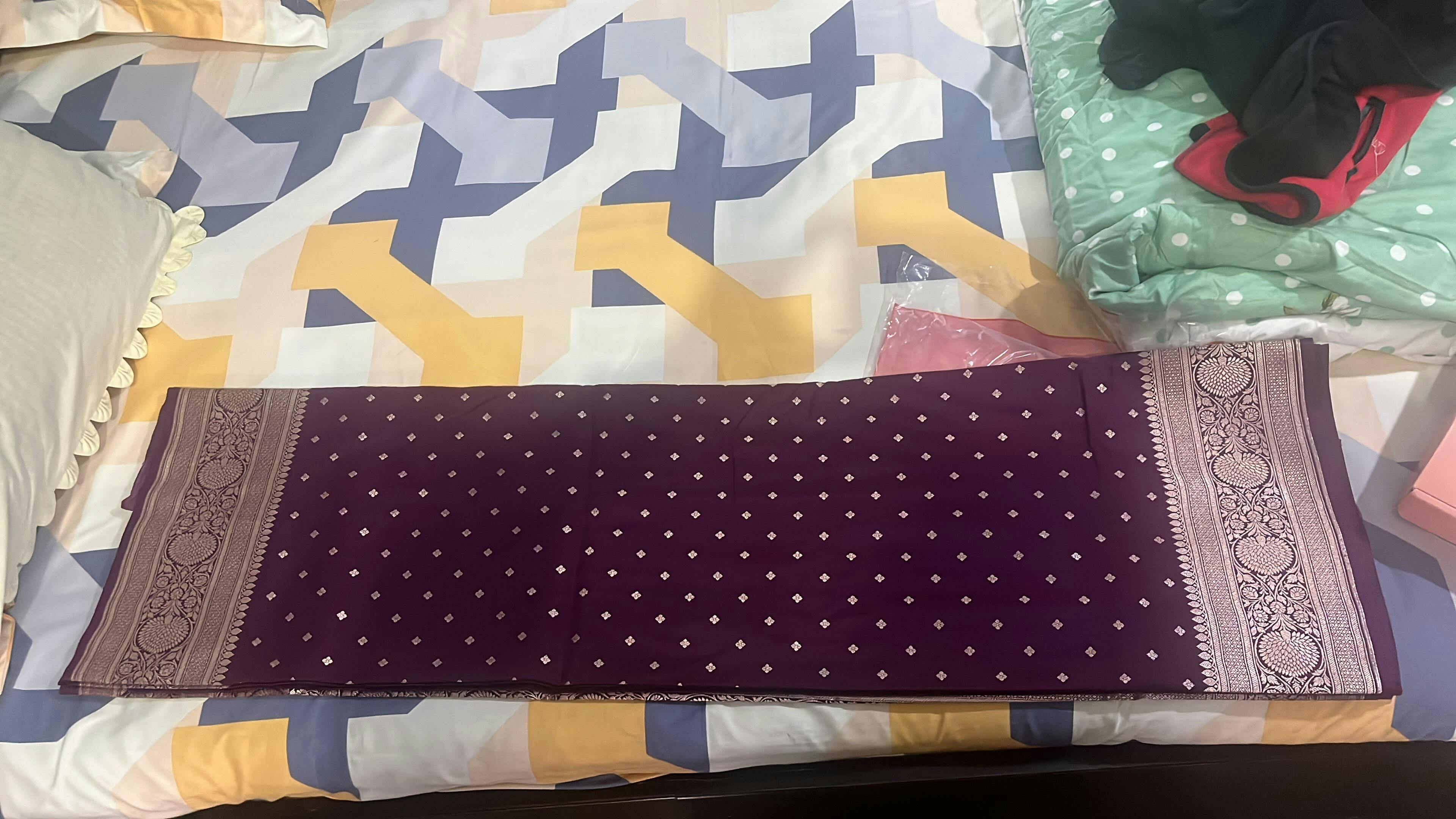 Purple Zariwork (Gold) Satin Silk Saree