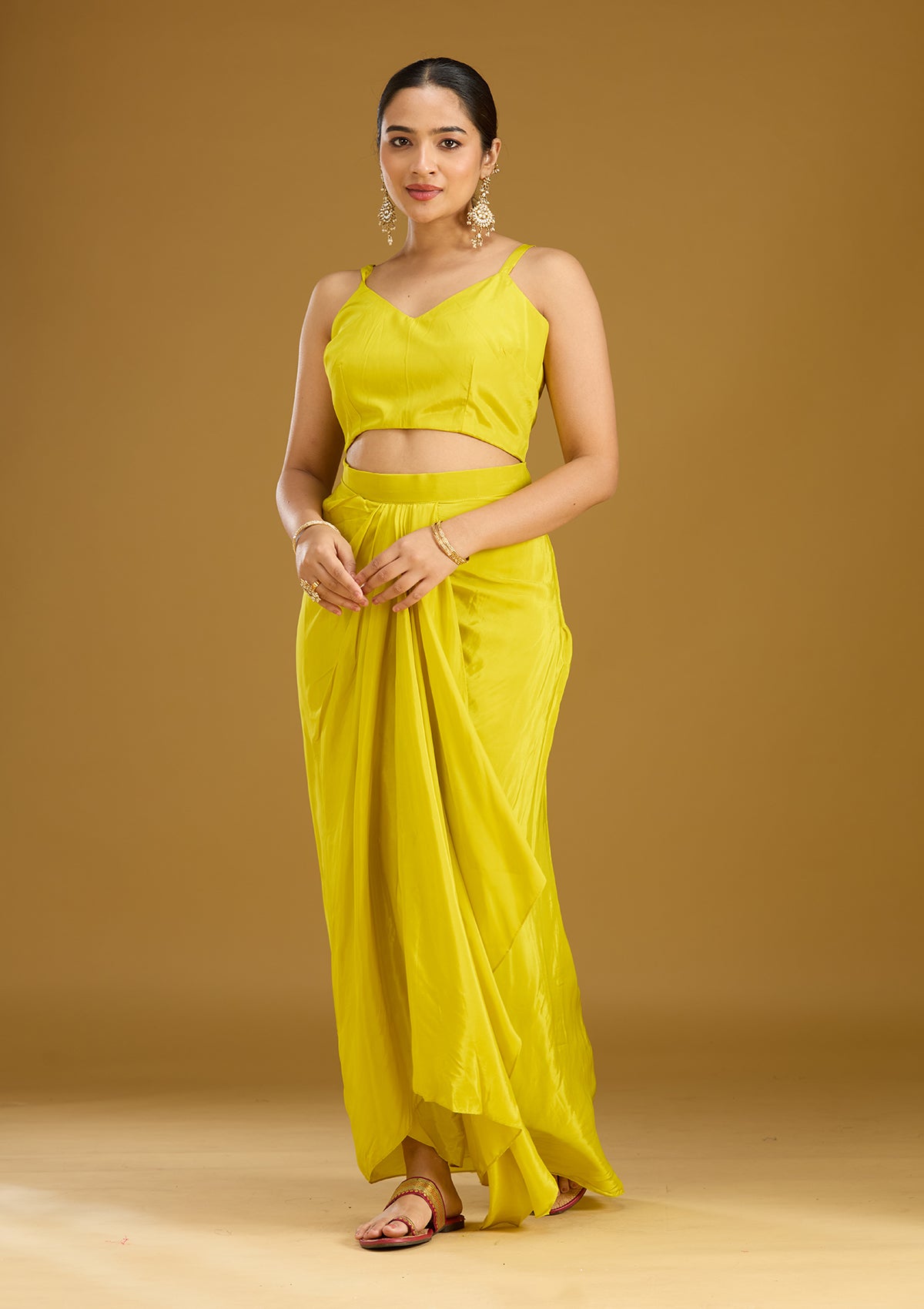 Yellow Salwar Suit in Satin fabric. The Salwar Suit is embellished with Threadwork embroidery. Accompanied with a bottom and dupatta. Comes with the Koskii promise of premium quality.