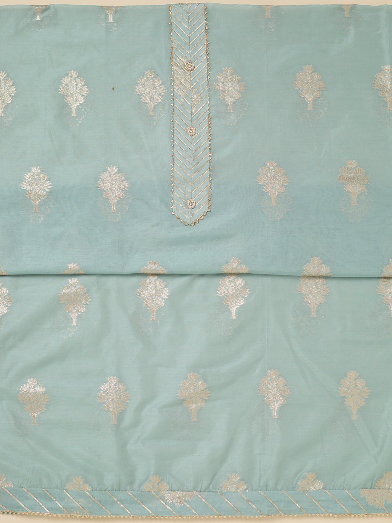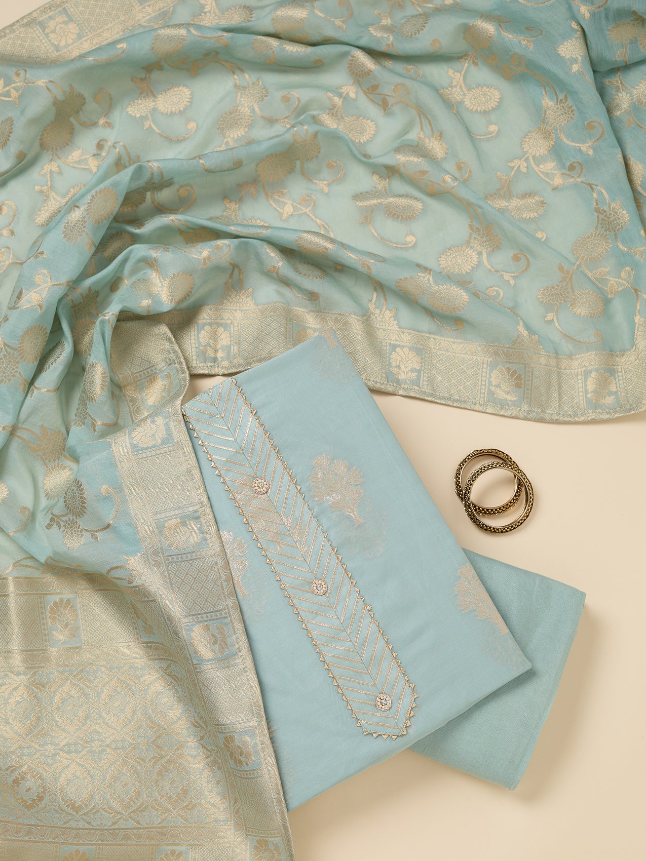 Light Grey Zariwork (Gold) Chanderi Unstitched Salwar Suit