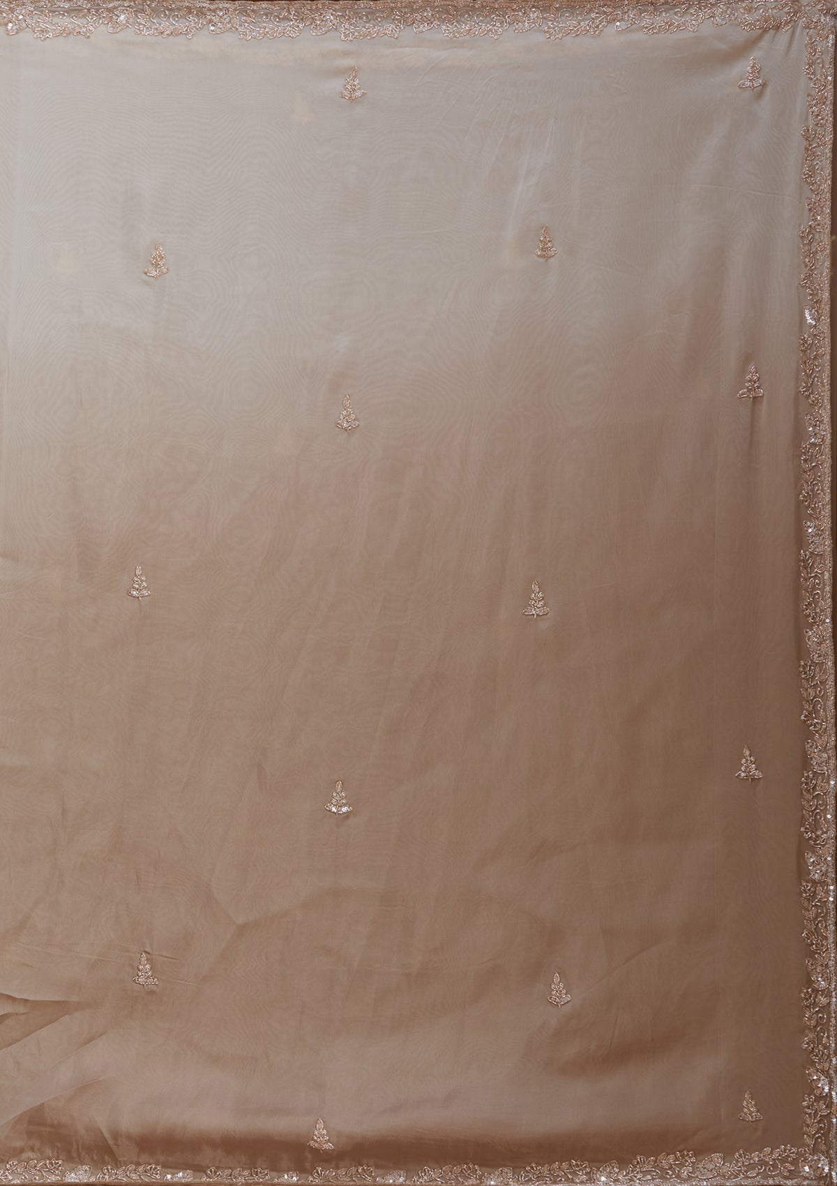 Beige Saree in Silk fabric The Saree is elevated with Cutdana embroidery It comes with an Unstitched blouse Comes with the Koskii promise of premium quality.