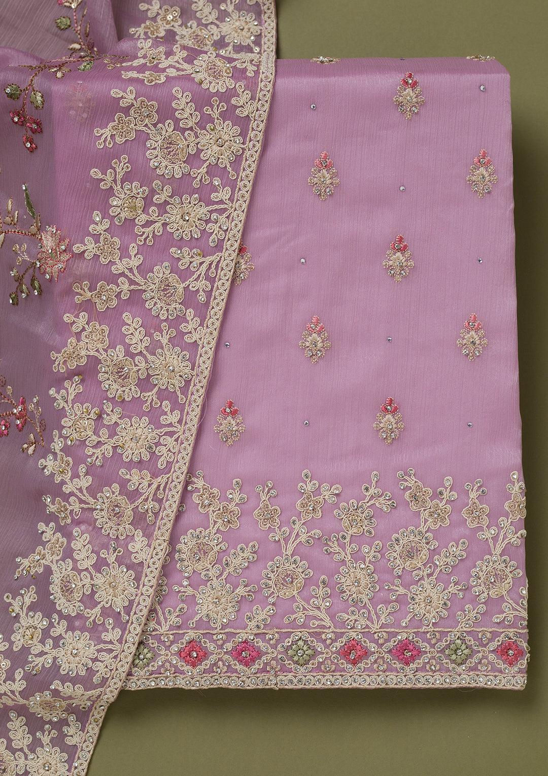 Lavender Cording Chinon Unstitched Salwar Suit
