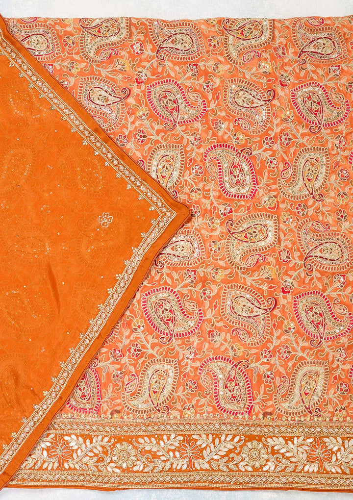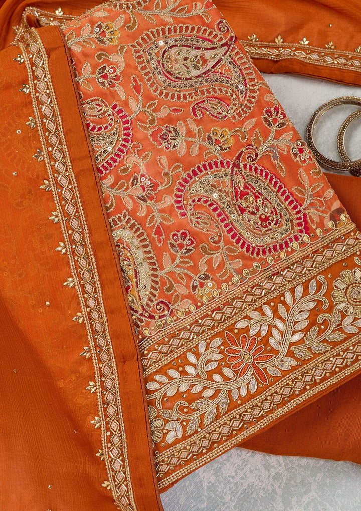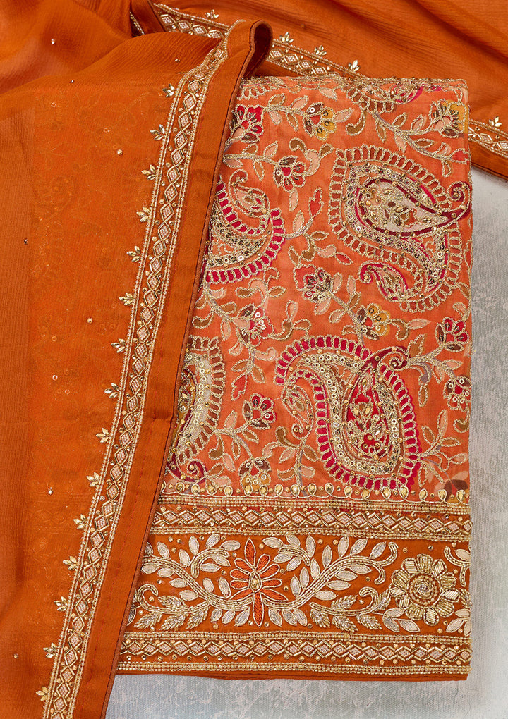 Orange Stonework Semi Crepe Unstitched Salwar Suit