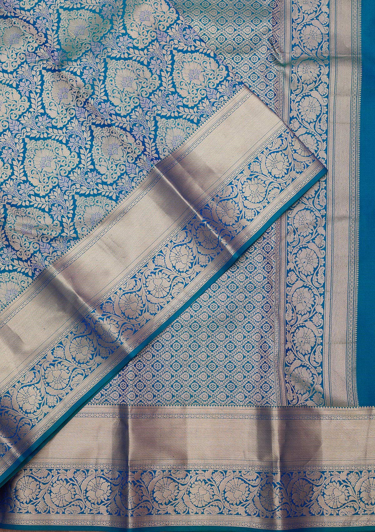 Peacock Blue Zariwork (Gold) Pure Silk Silk_Saree