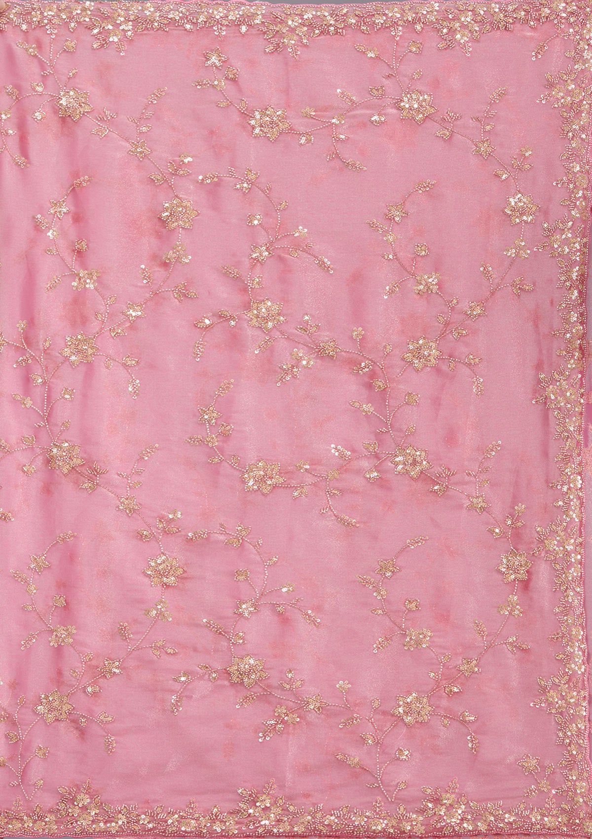 Pink Saree in Tissue fabric. The Saree is elevated with Cutdana embroidery. It comes with an Unstitched blouse. Comes with the Koskii promise of premium quality.