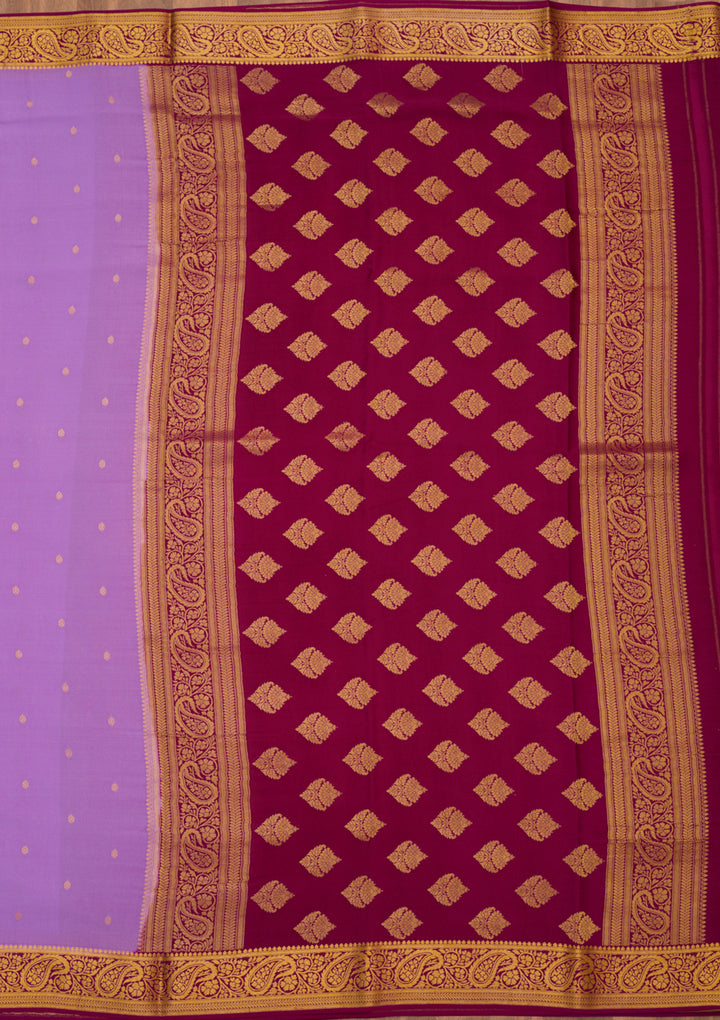 Purple Silk Saree in Pure Crepe fabric The Silk Saree is elevated with Zariwork embroidery It comes with an Unstitched blouse Comes with the Koskii promise of premium quality.