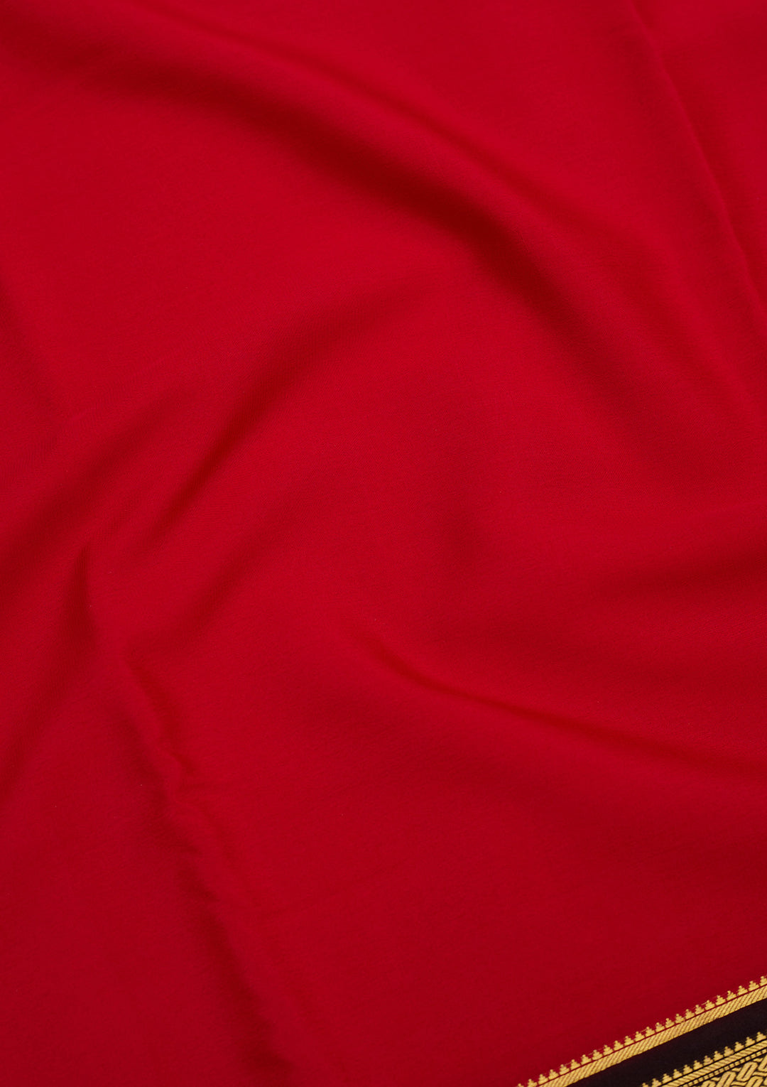 Red Silk Saree in Pure Crepe fabric The Silk Saree is elevated with Zariwork embroidery It comes with an Unstitched blouse Comes with the Koskii promise of premium quality.
