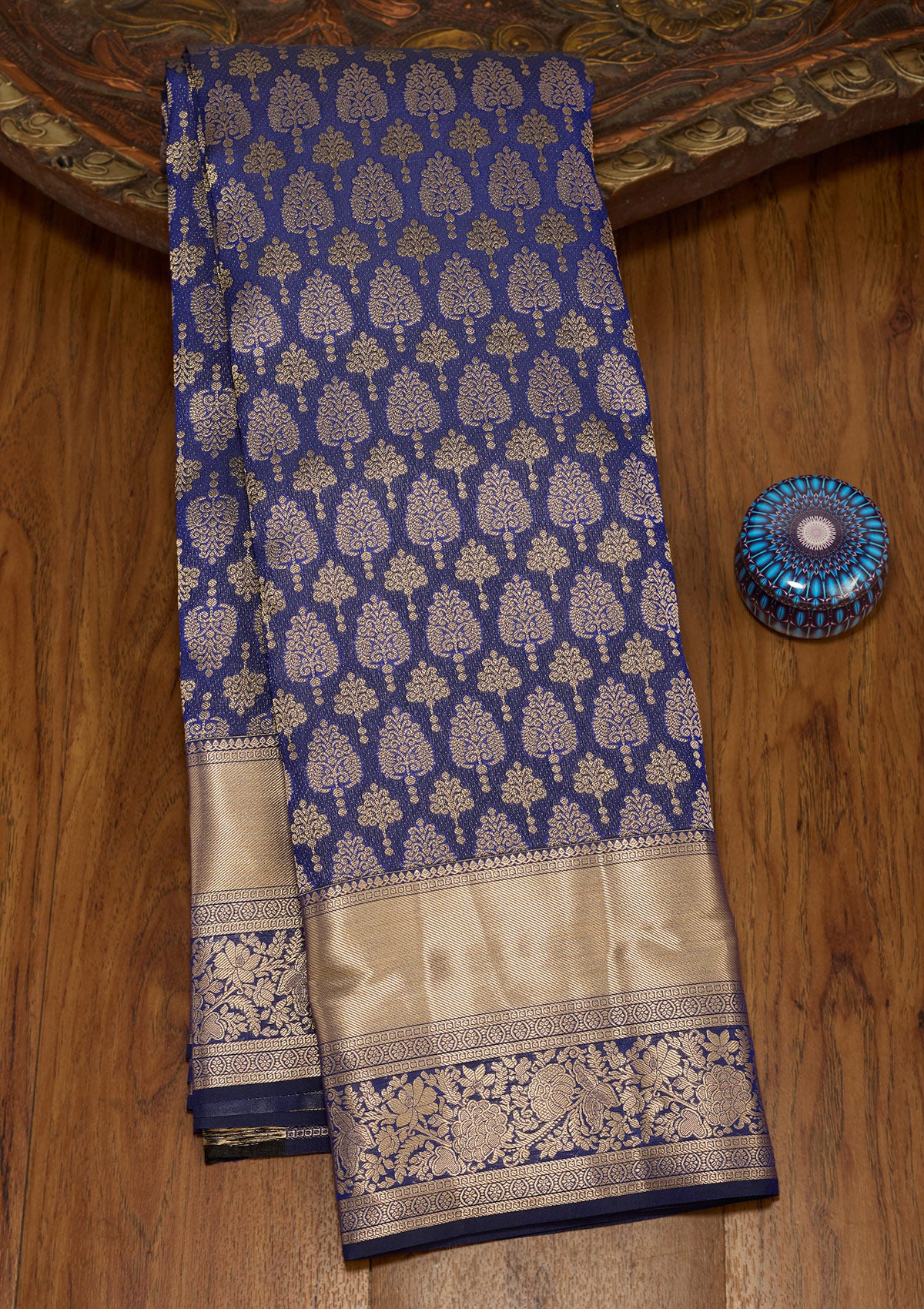 Royal Blue Zariwork (Gold) Silk Saree