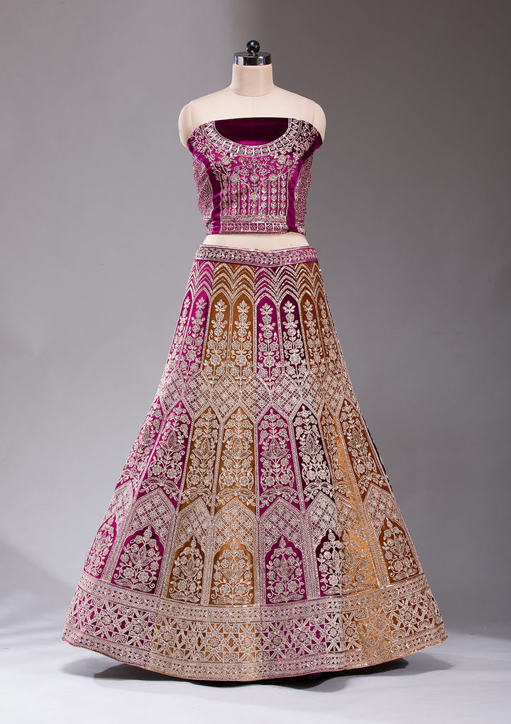 Wine Sequins Velvet Semi-Stitched Lehenga