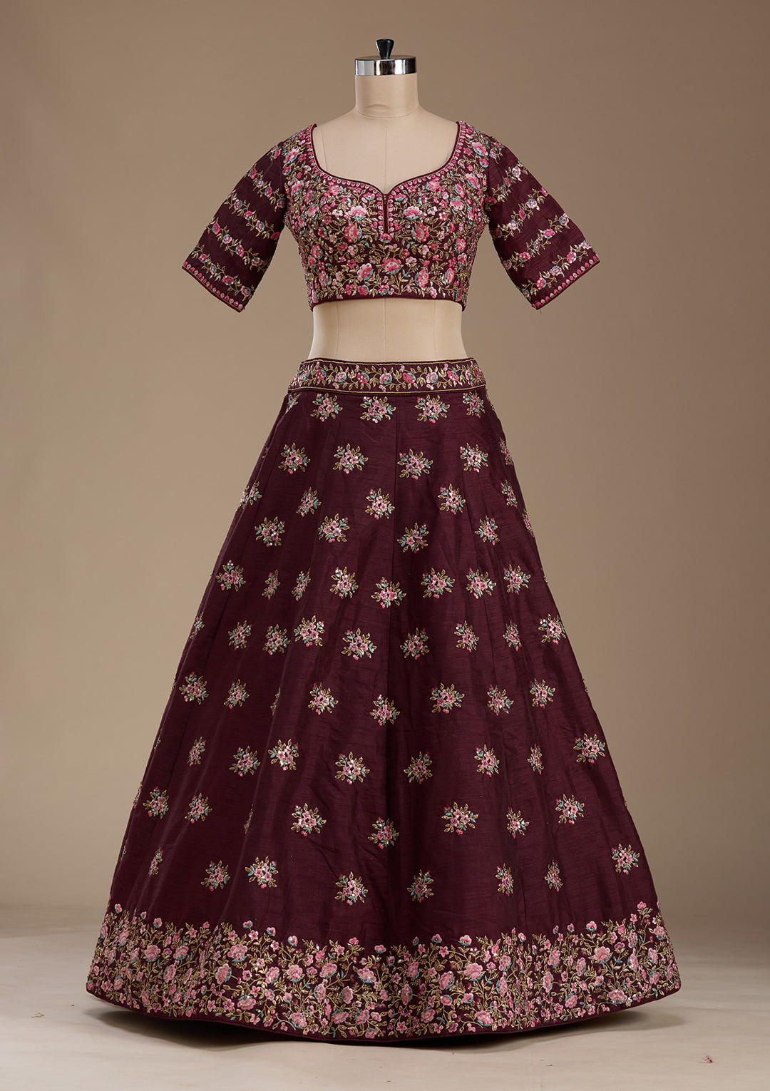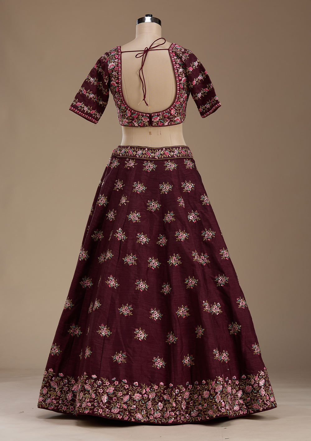 | Maroon Threadwork Raw Silk Readymade Lehenga | ₹ 20,993 | |