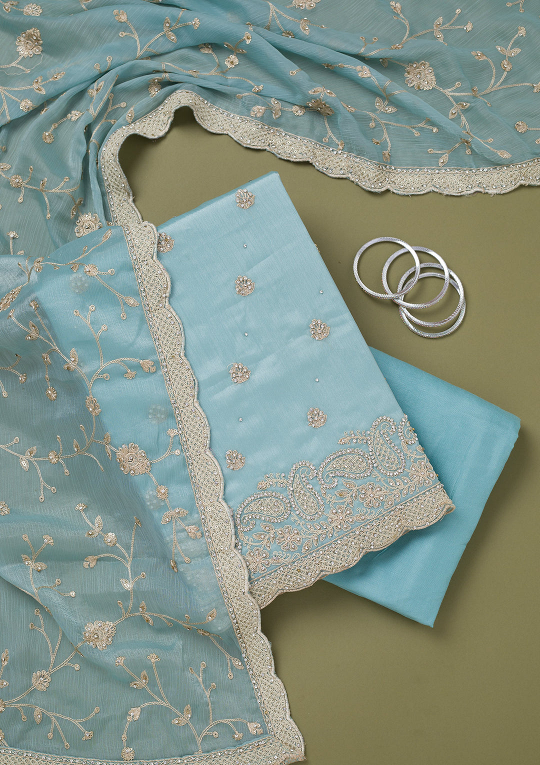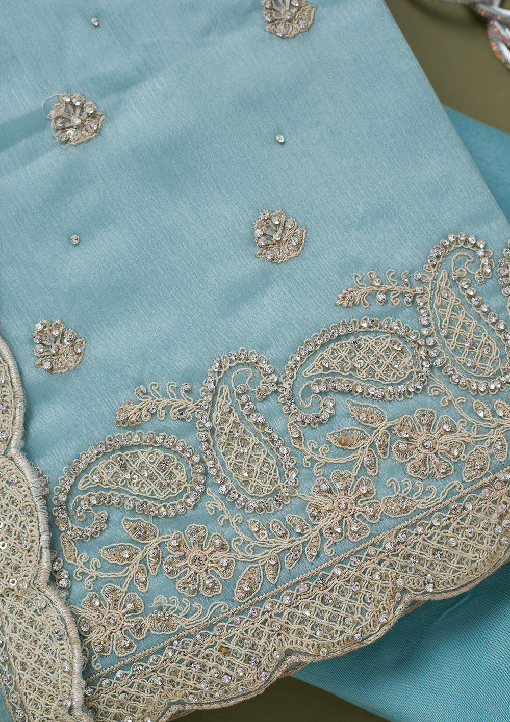 | Dark Grey Zariwork (Gold) Organza Readymade Salwar Suit | ₹ 9,990 | |