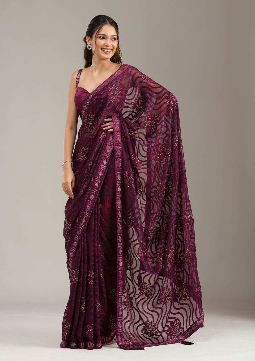 | Wine Threadwork Georgette Saree | ₹ 5,592 | |